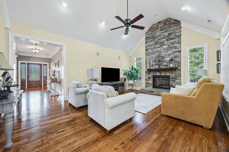 Nestled within Homewood Subdivision, this stunning home rests on nearly 9 private acres at the end of a cul-de-sac. Designed with thoughtful detail, the home offers 4 spacious bedrooms, 3 full baths & 2 half baths, along with a walk-up attic framed & plumbed for an additional suite complete with a bedroom, walk-in closet & full bath. The heart of the home is the gourmet kitchen, boasting a generous dining area, stainless steel appliances, gas range, breakfast bar, granite countertops & pantry. A large formal dining room adds the perfect space for hosting special occasions. A soaring living room with vaulted ceilings & stone fireplace with gas logs creates a warm & inviting atmosphere for gatherings. The main-level primary suite provides a retreat of its own with a double tray ceiling, spa-inspired bath with dual sinks, separate shower, whirlpool tub & walk-in closet. Additional comforts include a drop zone, laundry with utility sink, tankless water heater & abundant storage throughout. The home has been meticulously updated with a new roof (2024), whole-house replumbing (2025), new HVAC systems (2020 & 2025), new garage doors (2021), new gutters (2022) & a home generator (2022). A 2-car attached garage on the main level plus an oversized basement garage provide exceptional flexibility for vehicles, storage & hobbies. Outdoors, enjoy landscape lighting, irrigation, screened porch, deck with gas grill hookup, patio wired for a hot tub & a welcoming front porch. Peaceful & private, yet only minutes from shopping & dining, this property offers the best of both convenience & seclusion.