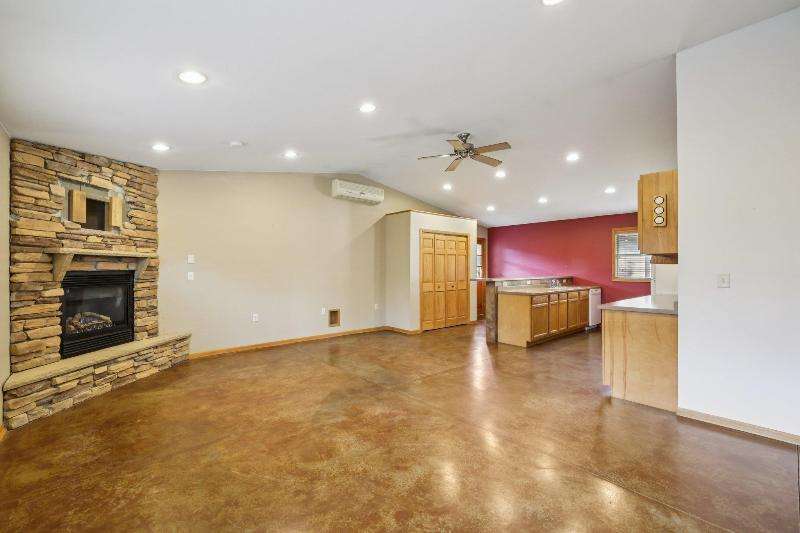 Welcome to this well-maintained 4-bedroom, 2-bath residence situated on a nicely landscaped corner lot in one of Spring Green's most sought-after neighborhoods. This thoughtfully designed home features a unique single-level floor plan offering convenient, stair-free living. The spacious interior includes a bright and inviting family room addition, which may also serve as a luxurious master bedroom suite. Additional highlights include an attached, heated 2-car garage, all appliances, and a Seller-provided home warranty for added confidence in your investment. The large living/dining/kitchen area is perfect for entertaining and features a gas fireplace. This property offers an exceptional combination of comfort, functionality, and location.