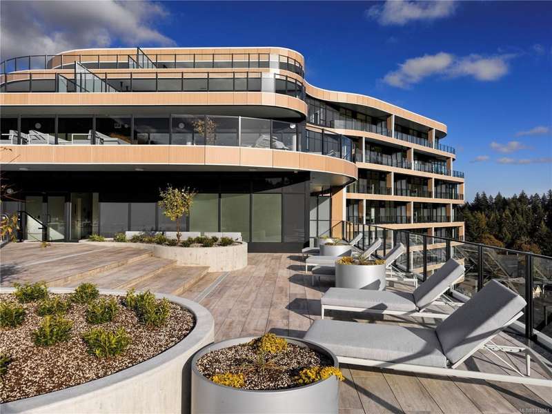 OH Nov 30 (11-1pm) Proudly Presenting The Magnificent ONE BEAR MOUNTAIN, a newly completed 18 storey resort-style living condominium where Luxury meets Quality constructions and High-end Finishings. Facing north with unobstructed view of the forest, this 16th floor beauty showcases 2 beds, 2 baths, cozy living room w/gas fireplace, designer kitchen that is equipped with Bosch appliances. Engineered Hardwood Floors throughout the home, custom entry closet, bench millwork and generous terrace overlooking the Golf Course and Mountains. This home comes with 1 UG EV parking spot&locker. Discover Victoria's best amenities here with Sky lounge&Business Centre on the 16th floor, Panoramic heated Pool on the 15th, Concierge Service, Level 6 fully furnished Outdoor Terrace, Fitness+Yoga studio, Kayak and Bike Storage.Surrounded by Mt. Finlayson, World known Golf course, bike trails and Forest, this is THE place to be! Developer's Inventory: more suites available!