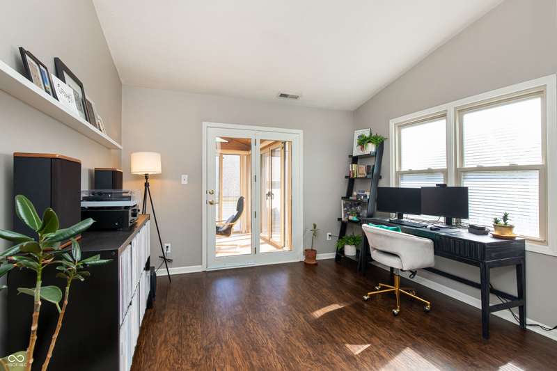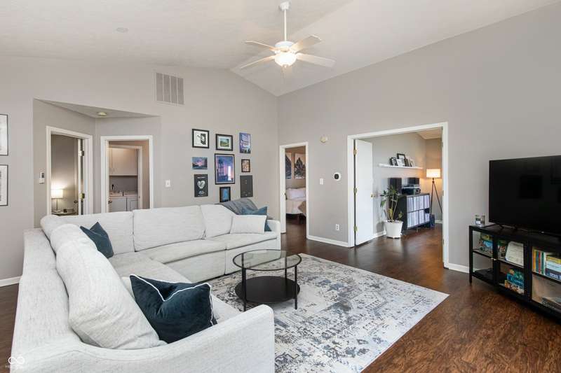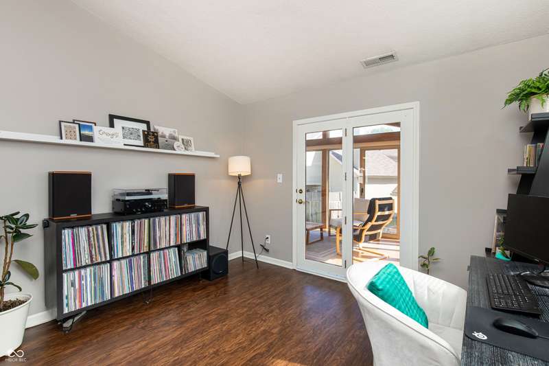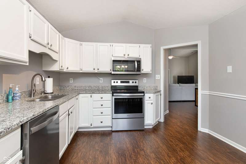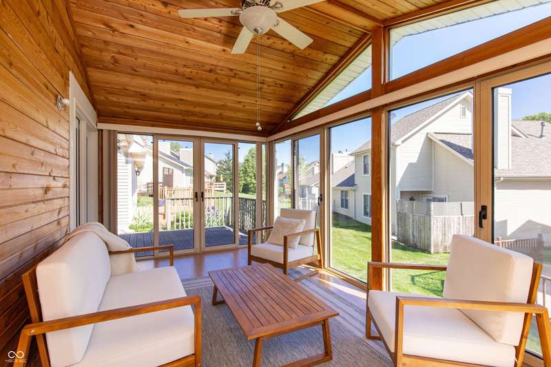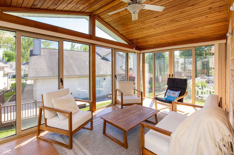 Super clean, move-in ready home in Steeplechase West! This 2 bedroom, 2 bath home with an additional finished room has been meticulously maintained and offers easy living both inside and out. The open floor plan features fresh paint, granite countertops in the kitchen and baths, stainless steel appliances, and newer luxury vinyl plank flooring throughout. A bright 3-seasons room adds nearly 200 square feet of versatile living space-perfect for morning coffee, a cozy reading nook, or enjoying the sunshine year-round with a space heater. In addition to the two bedrooms, there's an additional finished room that offers great flexibility for a home office, guest space, or hobby room. The neighborhood is quiet, walkable, and beautifully maintained. HOA covers lawn care and snow removal, so weekends are yours to enjoy. You're just steps from Sahm Park with tennis courts, golf, disc golf, a water park, and trails-including the soon-to-be-completed Nickel Plate Trail. Costco, Trader Joe's, coffee shops, and gyms are all just minutes away. Nothing to do but move in and start enjoying one of the best spots in Indy!