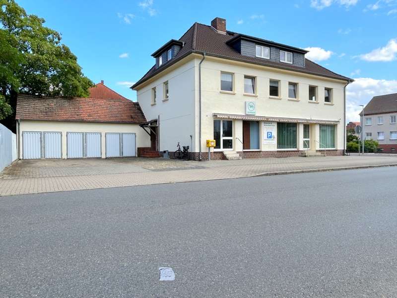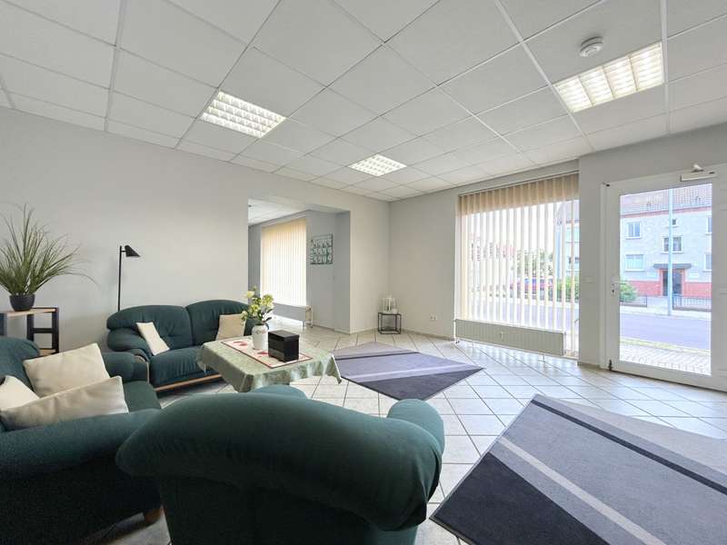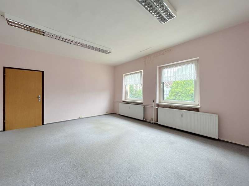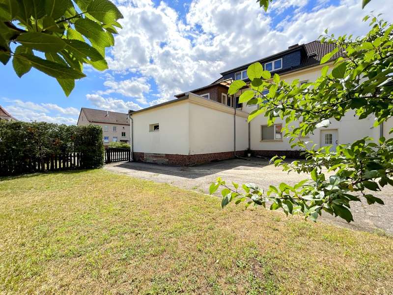 For sale is a residential and commercial building from 1947 with a living area of approx. 205 m² on a 987 m² plot. The house is in a well-kept condition and partly in need of renovation and offers two residential units as well as two commercial units. In addition, the property has six garages and a total of approx. 565 m² of usable space, of which approx. 175 m² can be used as commercial space. The residential and commercial building captivates by its historical construction and possesses the charm of past years. Separate entrances to the commercial units are available, as well as a side entrance to the house. The property offers a total of 13 rooms, including four bedrooms and five bathrooms/WCs. Upstairs is a spacious 6-room apartment, while the attic houses a 2-room apartment. Thereby, the attic offers expansion and conversion potential for further room design possibilities. The property has gas central heating from 1997 and instantaneous water heaters in the bathrooms. A bright hallway leads to a paved courtyard, from which access to the hallway is guaranteed. Furthermore, a small, well-kept garden belongs to the property. The house is not under monument protection. Currently, one commercial unit and also the attic apartment are rented. In addition, four garages are available for rent. The current rental income is approx. 808.75 € per month or approx. 9,705 € per year. There is potential for rent increases through targeted renovation and expansion/conversion measures. The location of the residential and commercial building is central and convenient, so that there is a good connection to public transport and shopping facilities. The quiet location and the small garden offer the residents a pleasant living atmosphere. This property is ideal for tradesmen or investors who are willing to update the house, which is partially in need of renovation, and benefit from the rental income. The multiple uses of the property make it an interesting investment with a lot of potential. Contact us today to arrange a viewing appointment and see the benefits of this property for yourself.