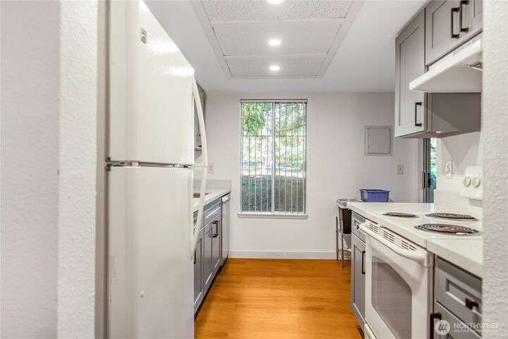 Charming Ground-Floor Condo in Sunset Garden! Enjoy a spacious living room with a cozy wood-burning fireplace, two large bedrooms, and no carpet throughout. Relax on your private patio or dine at the kitchen’s breakfast bar. HOA covers most utilities, plus you get a dedicated parking spot. Minutes to I-405 & I-5 — comfort, convenience, and location all in one!