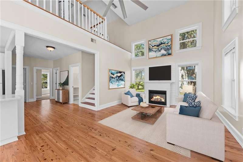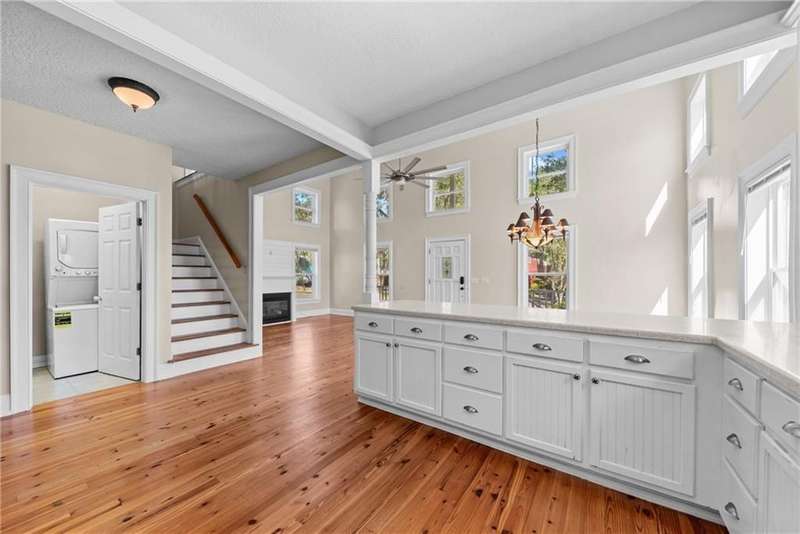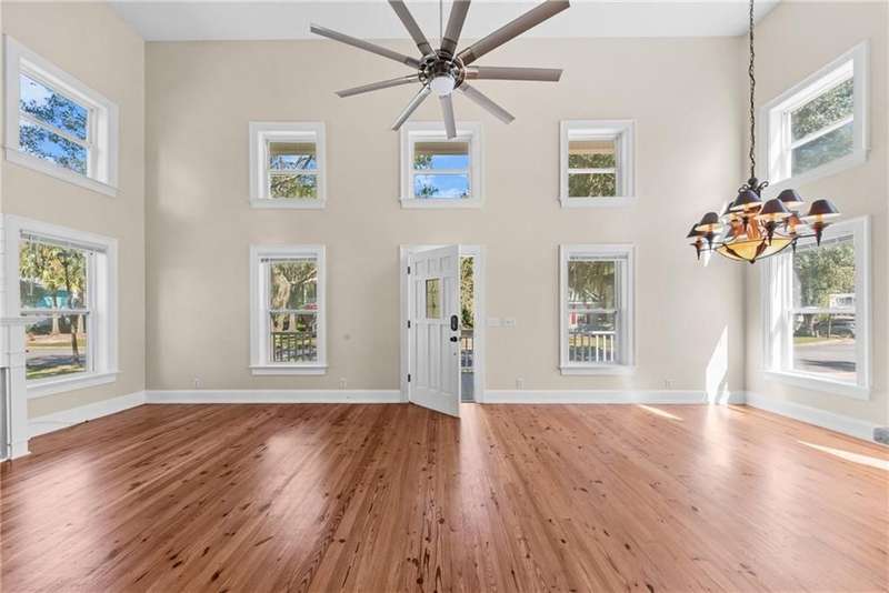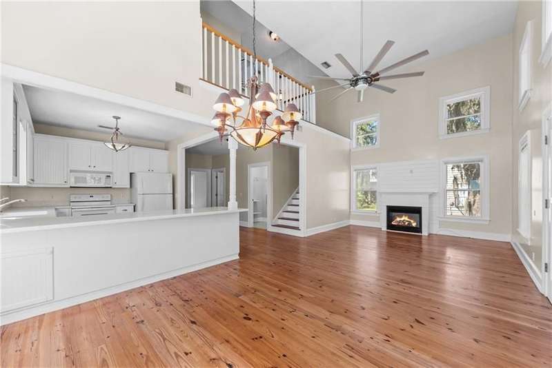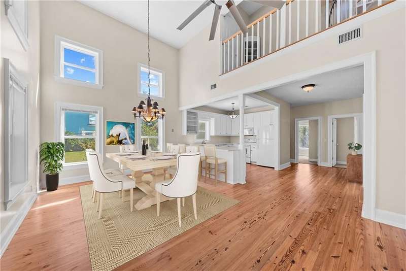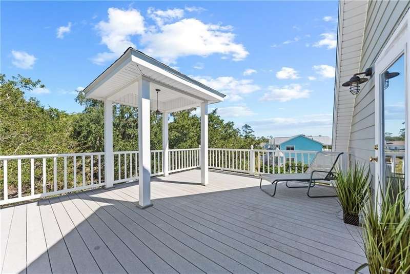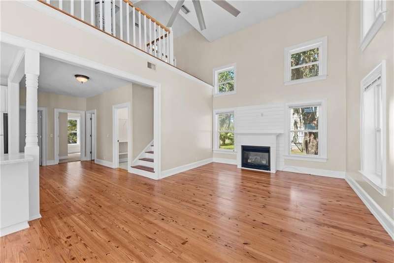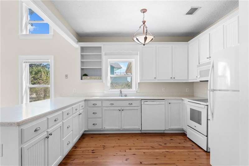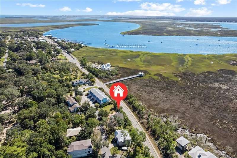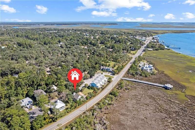 Welcome to this custom coastal cottage in the heart of Historic St. Marys, Georgia-just steps from the river, marina, and downtown festivals! With a brand-new architectural shingle roof and a distinctive three-story design, this home offers a rare opportunity to experience river-view living and small-town charm all in one. The main floor features two comfortable bedrooms, a full bathroom, and an interior laundry room equipped with washer and dryer. The open living and dining area is filled with natural light and soaring ceilings, creating an inviting space for everyday living and entertaining. The fully equipped kitchen includes Corian countertops, a breakfast bar, and generous cabinet space with beadboard accents. The flooring throughout adds to the character of the home-heart pine floors in the main living areas, tile floors in the bathrooms, and carpeted bedrooms for comfort. On the second floor, the primary suite has a sitting area, a walk-in closet and opens to a private balcony overlooking the St. Marys River. It includes a cozy loft area, perfect for an office or reading nook. A spiral staircase leads to the third-floor loft, which opens onto a spacious rooftop deck with marsh, marina, and St. Marys River views-the perfect place to watch the sunrise or enjoy the salty breeze. Nestled near the end of a quiet cul-de-sac, this small neighborhood sits just across the street from the river. From here, you can walk or golf-cart to the park, boat ramp, cafes, and the downtown district known for its waterfront dining, historic charm, and year-round community events. Great location for private view of fireworks on July 4th! Additional highlights include fully encased windows, cottage-style detailing throughout, and a custom design like no other in St. Marys. Local Lifestyle Highlights: Steps from the St. Marys Waterfront Park and Marsh Walk, perfect for sunrise strolls and year-round festivals. Minutes from the Cumberland Island ferry, offering access to one of Georgias most beautiful national seashores. Enjoy boutique shopping, coffeehouses, and coastal dining and vibrant entertainment along Osborne Street in downtown St. Marys. Convenient access to Kings Bay Naval Base, Crooked River State Park, and I-95 for travel to Jacksonville or Brunswick.