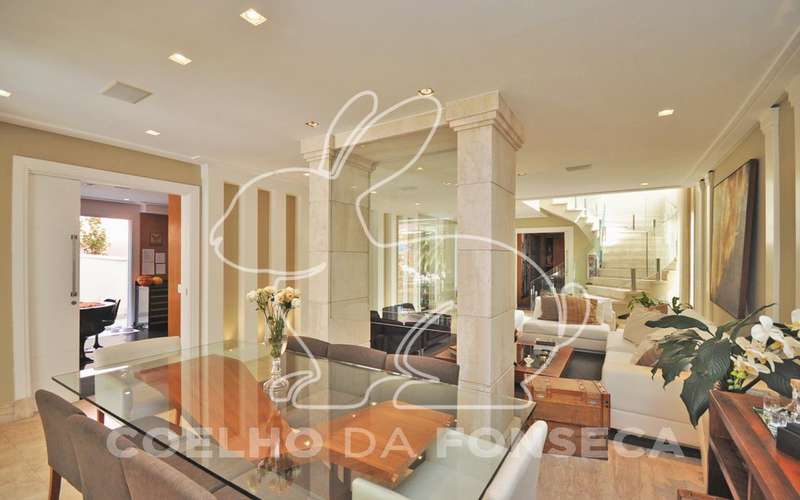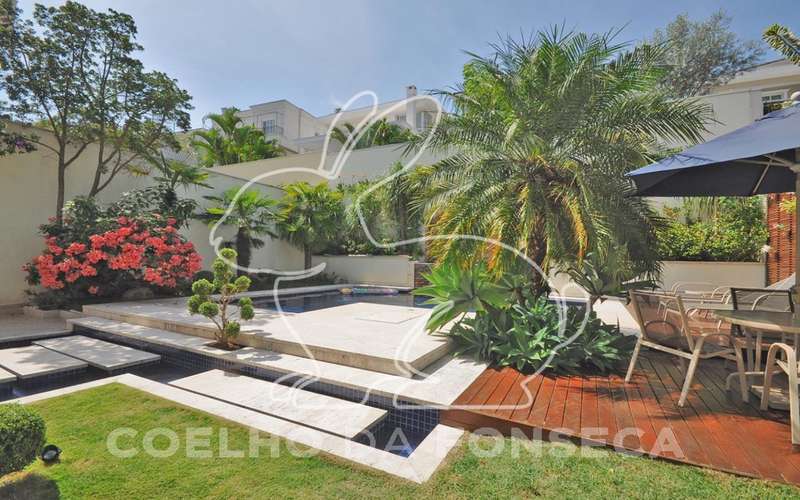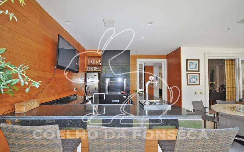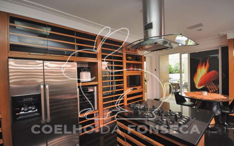 Excelente residencia, estilosa, bem localizada, com acabamento de primeira, área social em mármore travertino Navona, parte superior em Cumaru, Suite Master com amplo closet, duas cubas, hidro, sistema de som e iluminação, sistema de câmeras, ambientes todos integrados, ar condicionado em todos os ambientes inclusive na cozinha, mobiliada, área gourmet com piscina aquecida e cascata, sol o dia todo, forno para pizza e churrasqueira, chopeira, vestiario, sala de jogos, garagem subterranea.