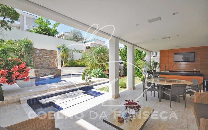 Casa no condomínio RES. DEZOITO DO FORTE, com 600m² área construída, 4 dormitório(s), 4 suíte(s), 6 vaga(s), 6 banheiro(s), piscina, mobiliado (a), ar condicionado, dep. de empregados, varanda, aquecedor solar, pé direito duplo.