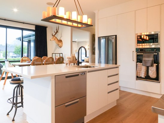 Welcome to this exceptional four-bedroom home where modern design meets family functionality. Nestled in a peaceful, contemporary neighborhood, this residence showcases thoughtful architecture and generous living spaces throughout its well-planned layout. The heart of the home features an impressive open-plan living area that creates a seamless connection between indoor and outdoor spaces. The patio and premium BBQ area set the stage for year-round entertainment and relaxation. A separate formal lounge provides additional flexibility for family living, whether it's quiet time with a book or hosting guests. The designer kitchen stands as a testament to both style and practicality, featuring high-end appliances, elegant countertops, and abundant storage solutions. Its central position allows for easy interaction with both dining and family areas, making it perfect for casual meals or elaborate dinner parties. The master suite offers a private retreat, complete with a well-appointed walk-in closet and modern ensuite bathroom. Three additional bedrooms provide comfortable spaces for family members or guests, each featuring generous wardrobe storage. Practical features include a two-car internal access garage with a convenient laundry space. The 995sqm section has been thoughtfully landscaped for minimal maintenance, allowing more time for family activities and entertainment. Located within easy reach of schools and town center amenities, this home delivers on both lifestyle and convenience. Its position in the modern subdivision combines the benefits of a quiet residential setting with the advantages of urban accessibility. Perfect for families seeking a contemporary home that balances style with functionality, this property offers the ideal setting for your next chapter of family life.