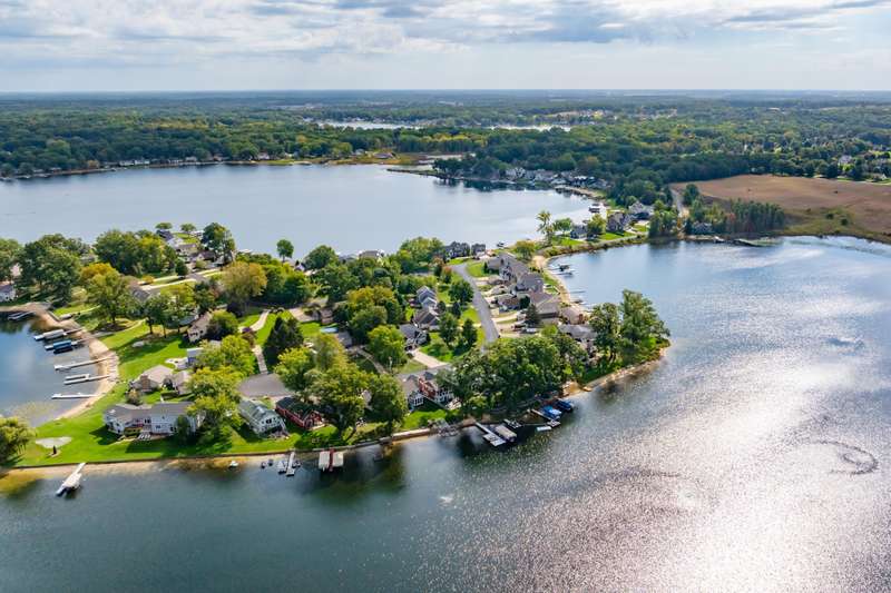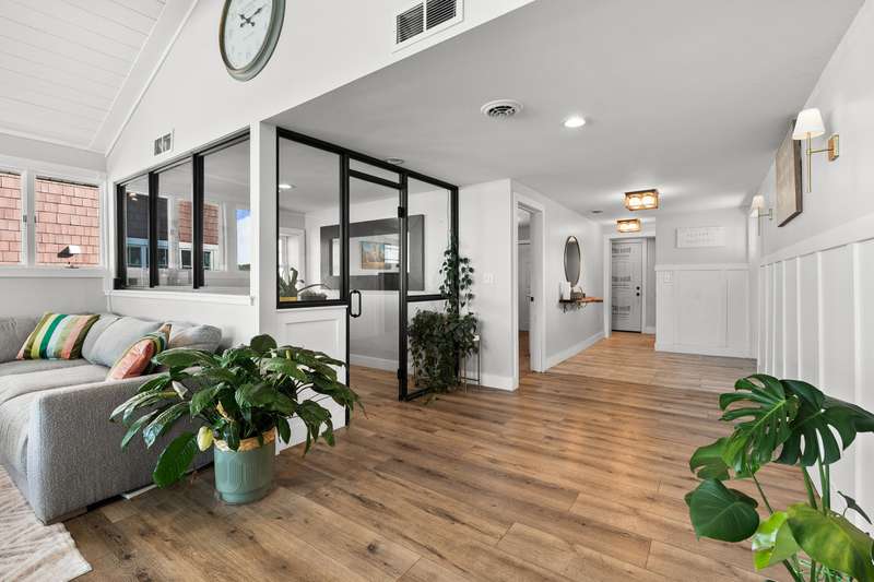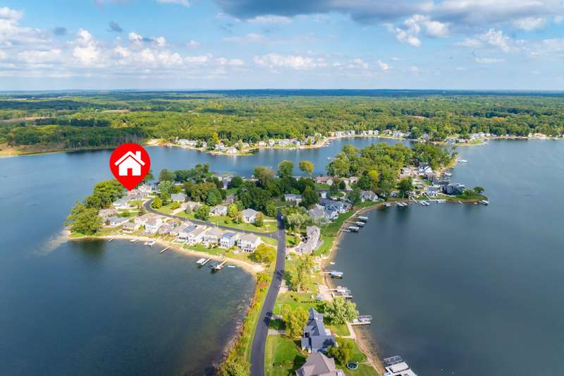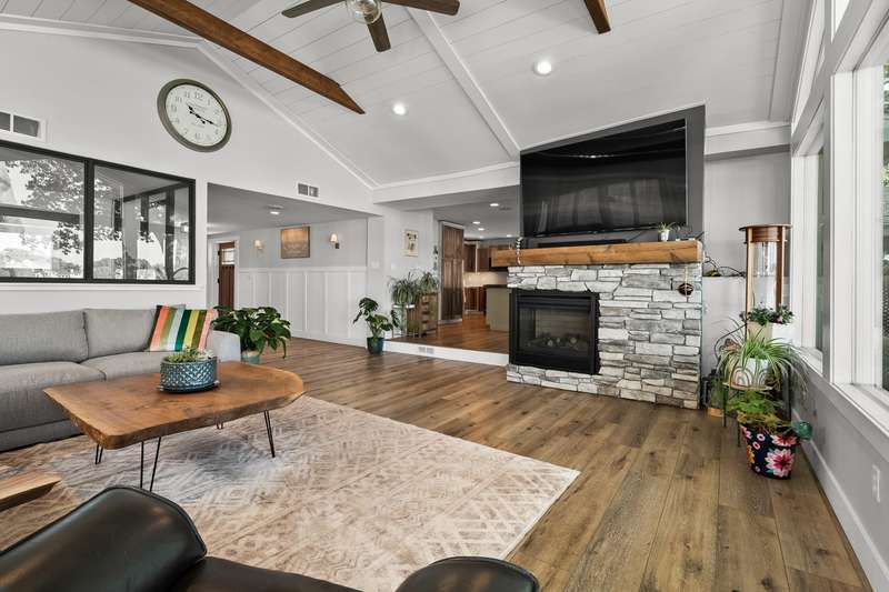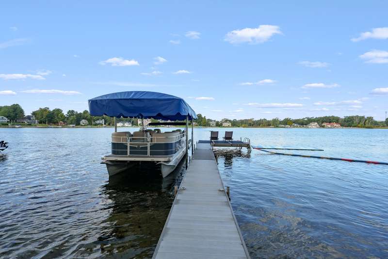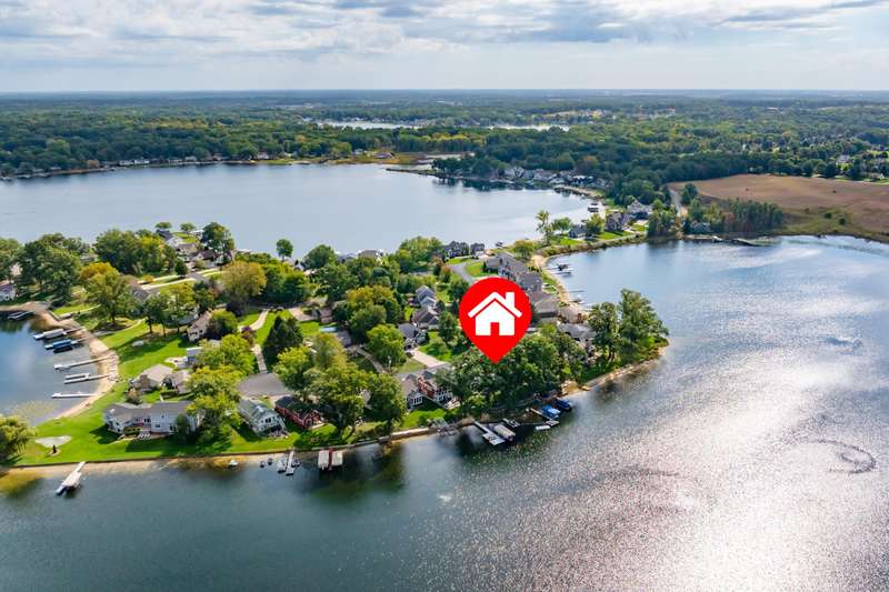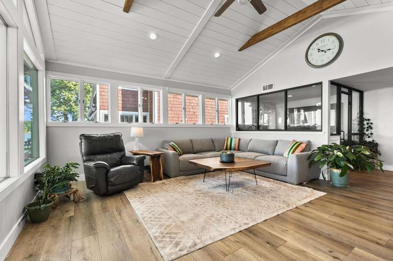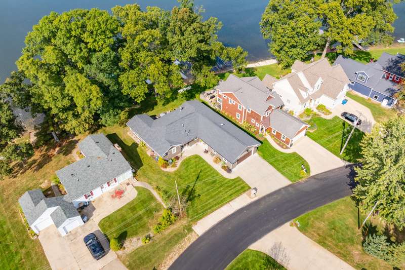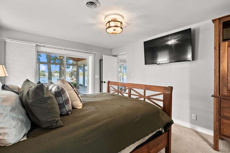 Experience elevated waterfront living in this exceptional Eagle Lake home! Perfectly positioned to capture the most breathtaking sunsets, with 80 feet of prime lake frontage and impeccably landscaped surroundings, this property offers a rare combination of privacy, beauty, and modern comfort. Inside, the home showcases stylish updates throughout, designed for effortless main-floor living. The open-concept great room centers around a refined fireplace and a wall of picture windows that frame endless water views. A glass-walled office brings in natural light and architectural interest, while two serene bedrooms provide restful escapes. (the owner is a builder and can convert the office back into a 3rd bedroom if desired) Step into the 3-seasons room, an extension of the home with the surround sound system throughout, to enjoy the generous indoor/outdoor living spaces. Built into the luxury patio is a gas-log firepit, and beautiful landscape lighting. The second-tier patio offers more lounge spaces before the newly added $80k seawall and tranquil shoreline. A large garage and extensive storage complete this luxury lakeside haven where every day feels like a getaway on Eagle Lake! Ask for details about the approved second story addition if interested.