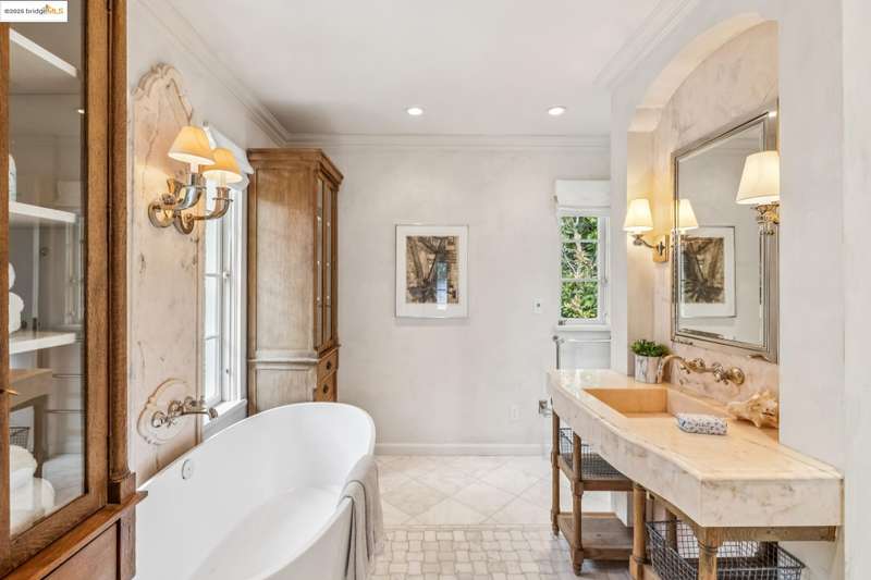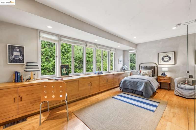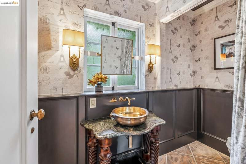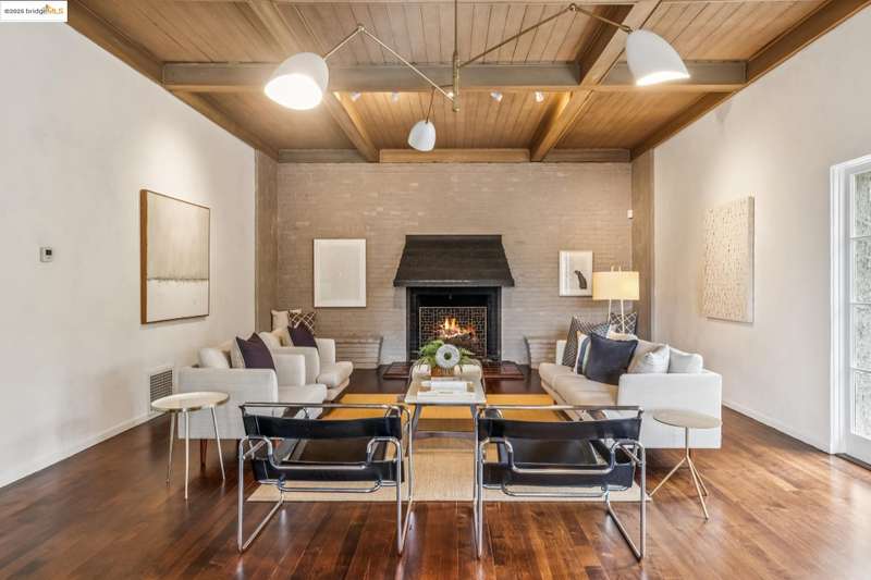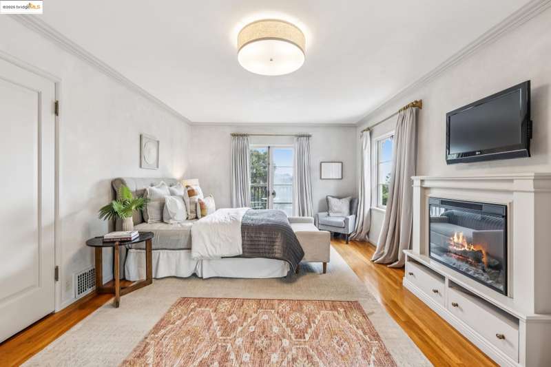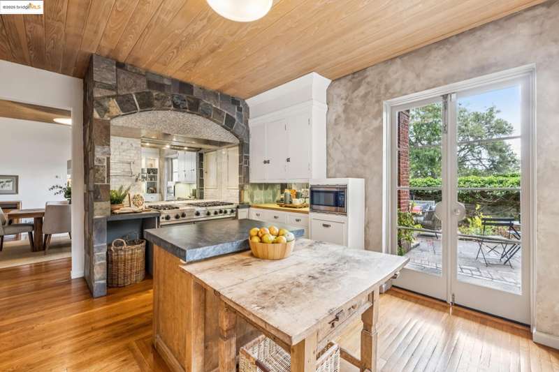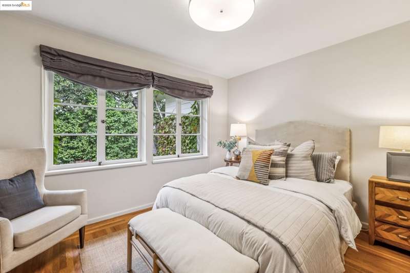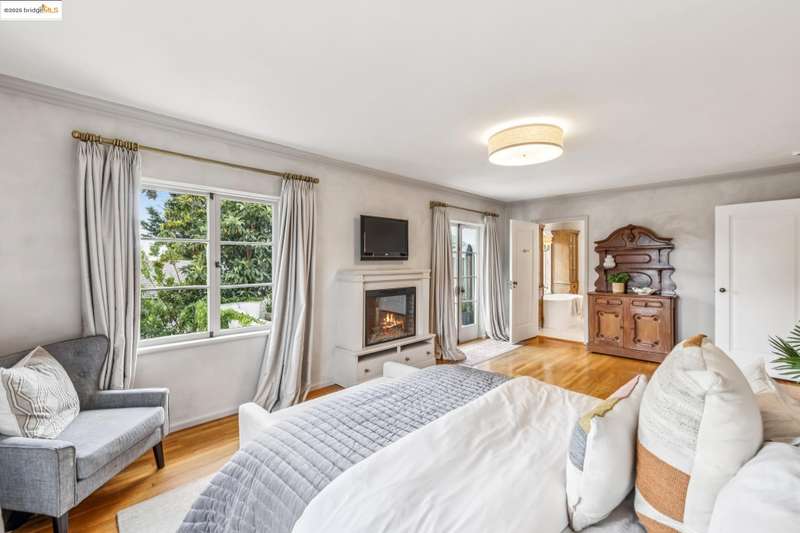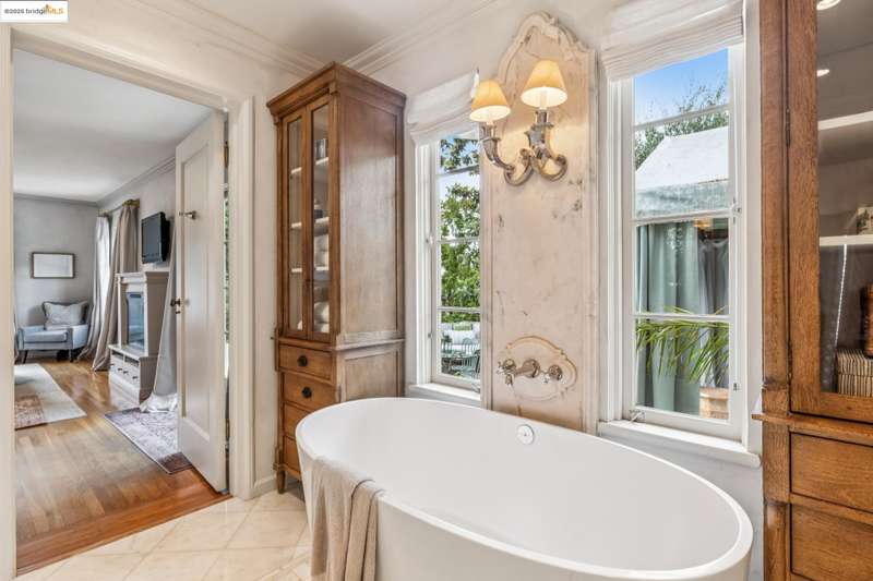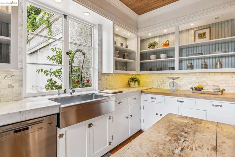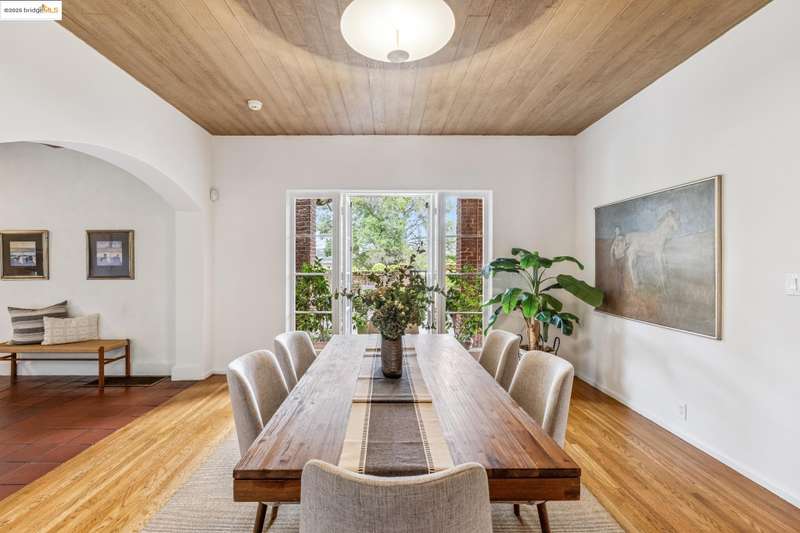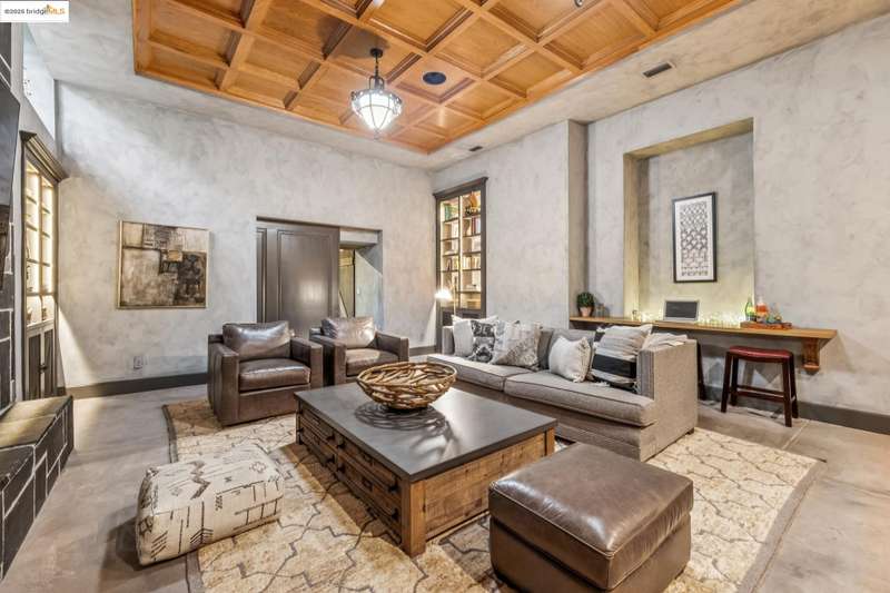 Extraordinary in so many ways...305 is part of the original Taylor Estate, which occupied this entire hillside. What you have is an amazing location at the top of the cul-de-sac, ample parking for guests in a shared Motorcourt, south facing balconies and a large courtyard, incredible spaces for entertaining, north terraced garden designed by Robert Trachtenberg. An incredible living room with 16’ ceilings, spacious dining room, super stylishly updated kitchen, pantry, full bath, laundry. 3 sets of French doors to courtyard! A bedroom and guest bath on main level are super convenient. Upstairs 3 bedrooms, 2 gorgeous baths, a private deck off primary. The lower level has high ceilings and a huge TV/media room/man cave has walls of bookcases, an electric fireplace, TV, ½ bath (upgrades made to original space done without permits). The back room offers endless possibilities as huge studio, workshop or perhaps a cool ADU. Super convenient to Claremont Hotel & Club, SF Express bus, Star Market, College Ave shops and Rockridge. Private. One-of-a-kind!
