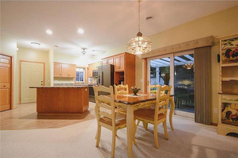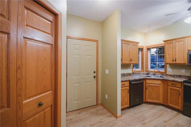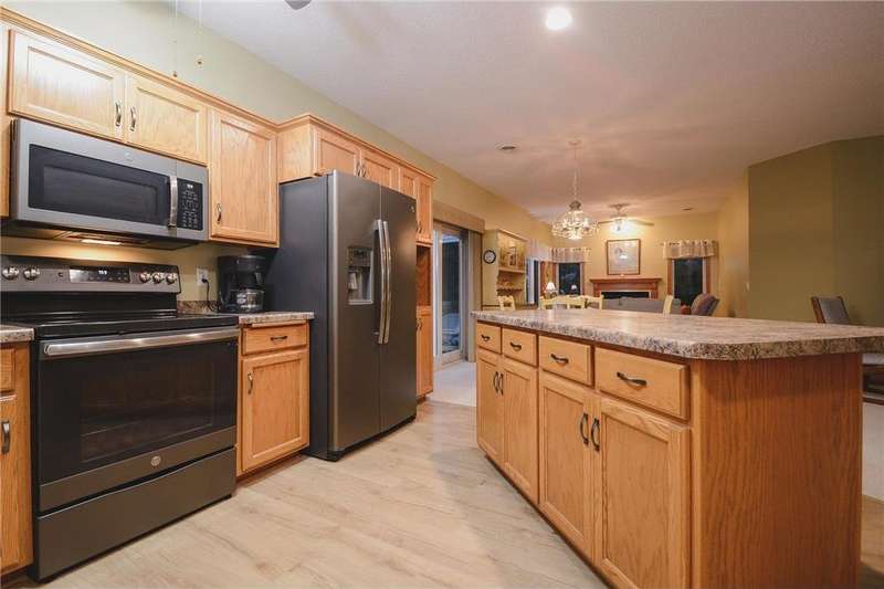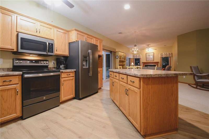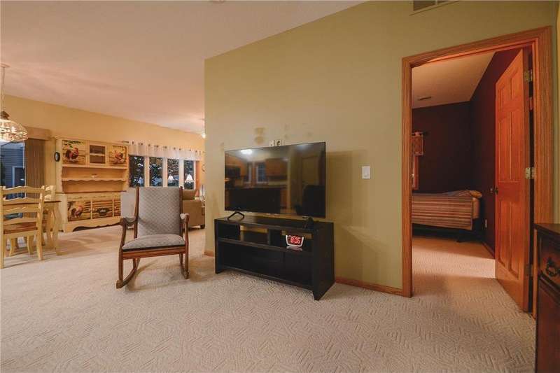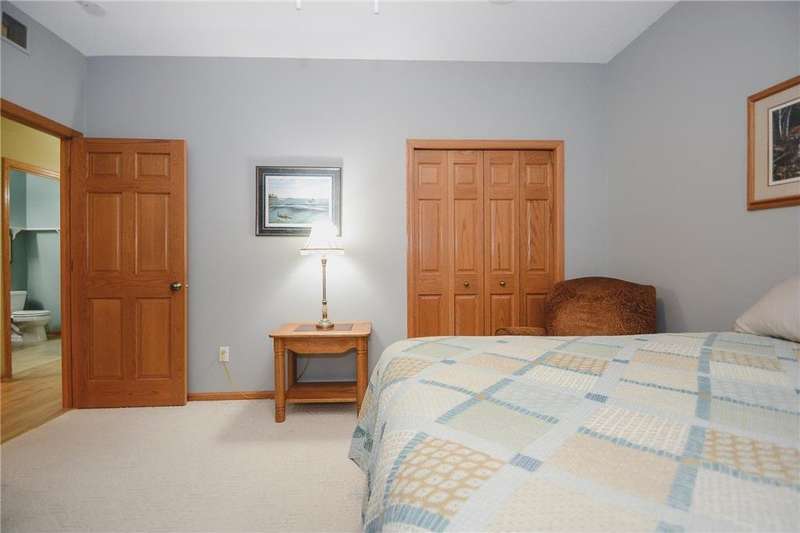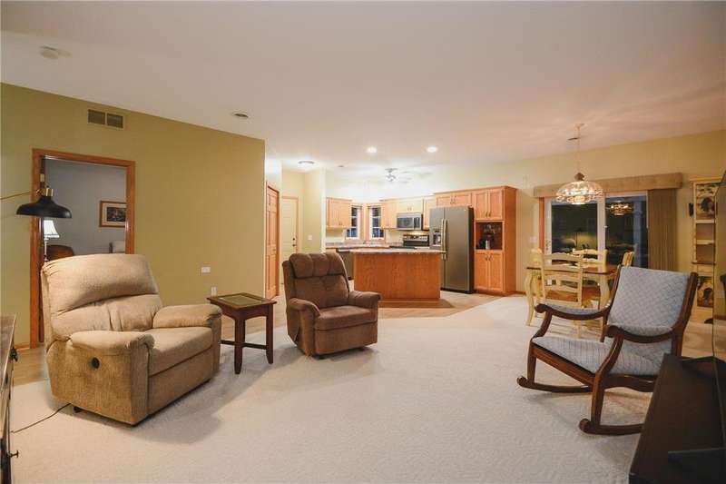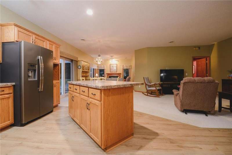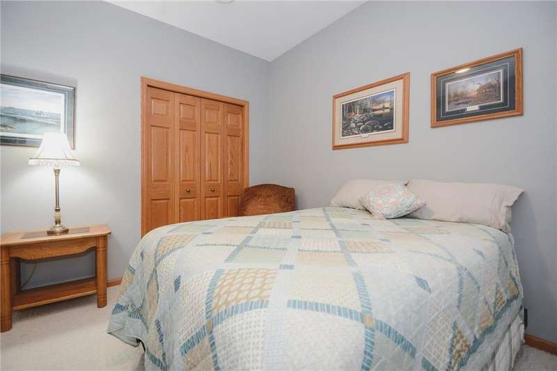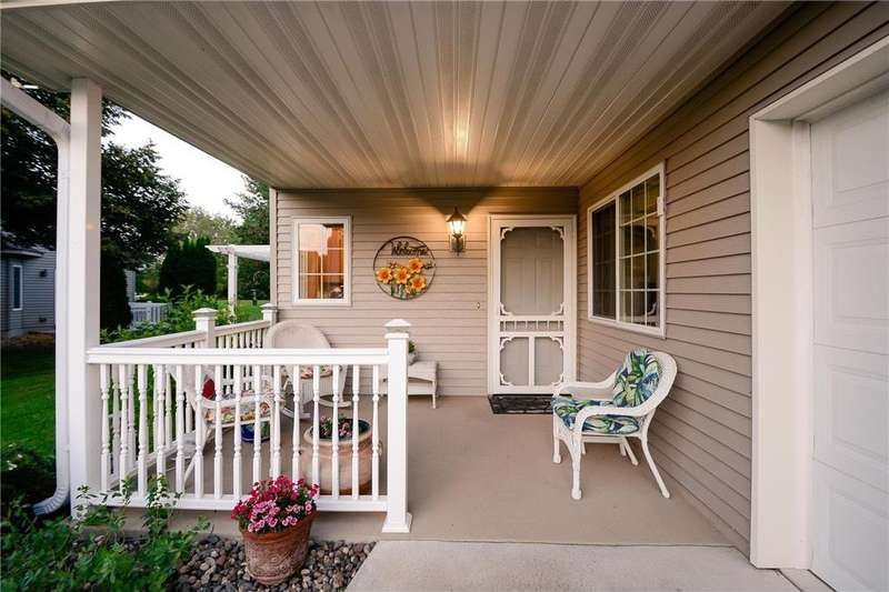 Welcome to this beautifully maintained one-level twin home in the desirable Clearwater Estates community! Offering 2 bedrooms, 2 bathrooms, and 1,502 sq ft, this home features an inviting open-concept layout with 9-foot ceilings and abundant natural light. The spacious kitchen is equipped with custom wood cabinetry, a center island, pantry, and newer slate appliances, including a GE refrigerator, microwave, and dishwasher. The sunroom with a cozy gas fireplace is the perfect place to relax, while the informal dining area opens to a private backyard oasis with an aggregate patio, pergola, lush perennials, mature trees, and no rear neighbors! The primary suite includes a full private bath and large walk-in closet, while additional features such as in-floor radiant heat, LVP flooring, 6-panel doors, and updated windows and doors add both comfort and style. The insulated and heated garage offers a workbench, water access, and a convenient golf cart door. Recent additional updates include a new roof and siding (2023) and water heater (2022). Clearwater Estates is a gated community with outstanding amenities, including a heated in-ground pool, clubhouse, scenic Mississippi River overlook walkway, and HOA-maintained grounds with internet included. Conveniently located near parks, restaurants, The Preserve Disc Golf Course, the Mississippi River and more, this property offers a quick close and comes with a one-year home warranty for peace of mind!