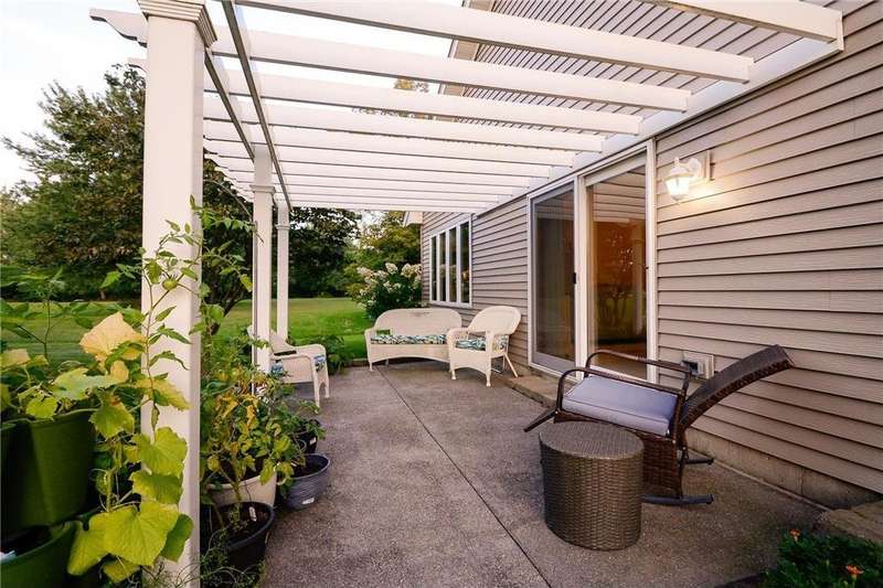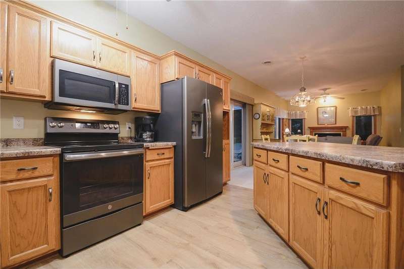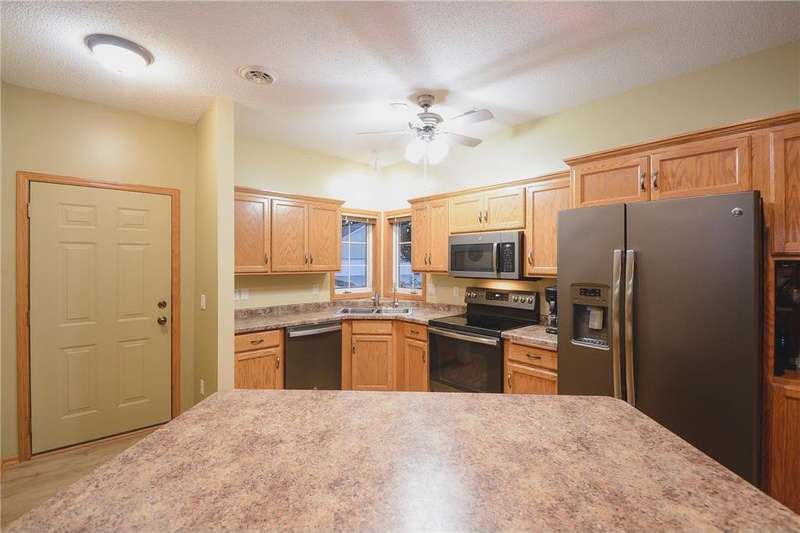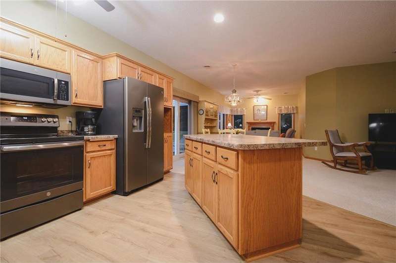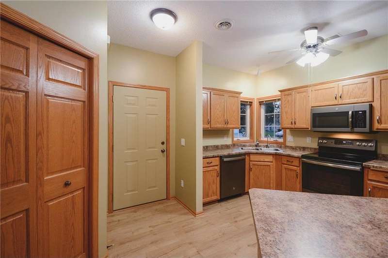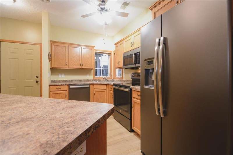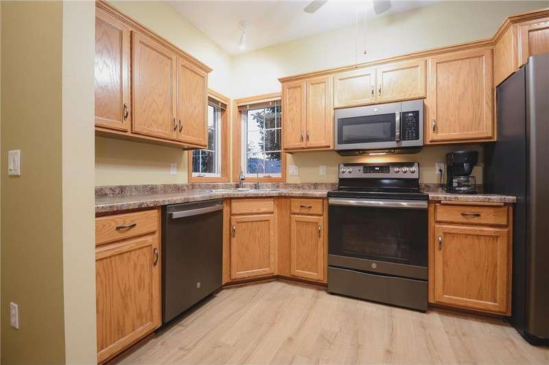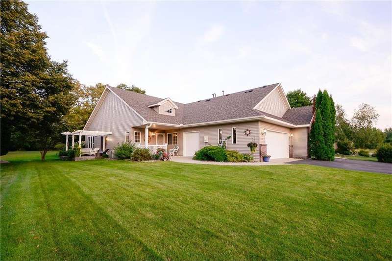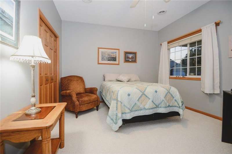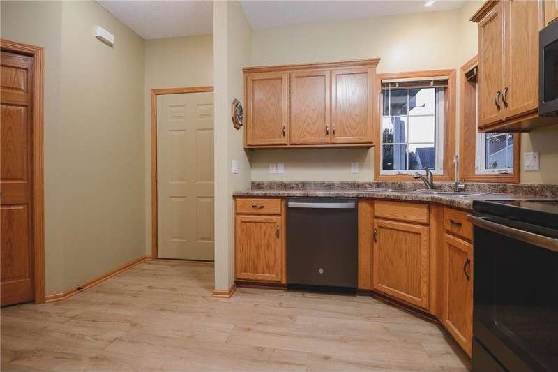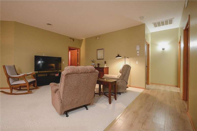 Welcome to this beautifully maintained one-level twin home in the desirable Clearwater Estates community! Offering 2 bedrooms, 2 bathrooms, and 1,502 sq ft, this home features an inviting open-concept layout with 9-foot ceilings and abundant natural light. The spacious kitchen is equipped with custom wood cabinetry, a center island, pantry, and newer slate appliances, including a GE refrigerator, microwave, and dishwasher. The sunroom with a cozy gas fireplace is the perfect place to relax, while the informal dining area opens to a private backyard oasis with an aggregate patio, pergola, lush perennials, mature trees, and no rear neighbors! The primary suite includes a full private bath and large walk-in closet, while additional features such as in-floor radiant heat, LVP flooring, 6-panel doors, and updated windows and doors add both comfort and style. The insulated and heated garage offers a workbench, water access, and a convenient golf cart door. Recent additional updates include a new roof and siding (2023) and water heater (2022). Clearwater Estates is a gated community with outstanding amenities, including a heated in-ground pool, clubhouse, scenic Mississippi River overlook walkway, and HOA-maintained grounds with internet included. Conveniently located near parks, restaurants, The Preserve Disc Golf Course, the Mississippi River and more, this property offers a quick close and comes with a one-year home warranty for peace of mind!