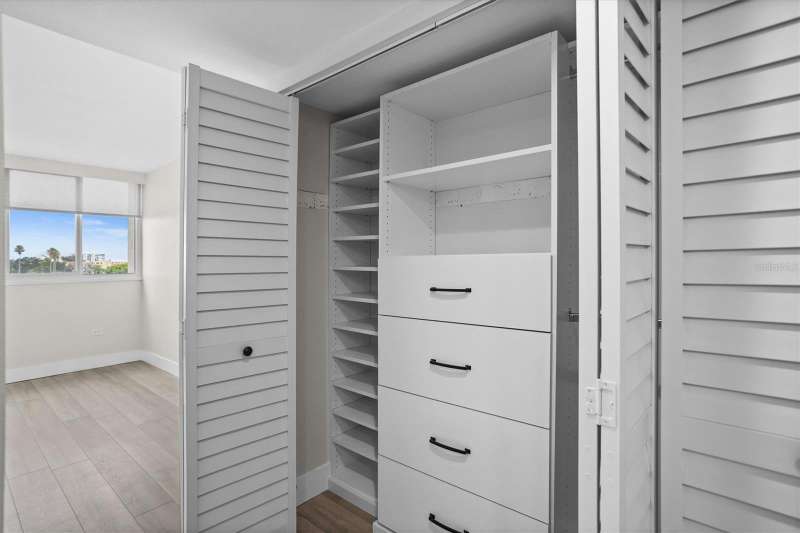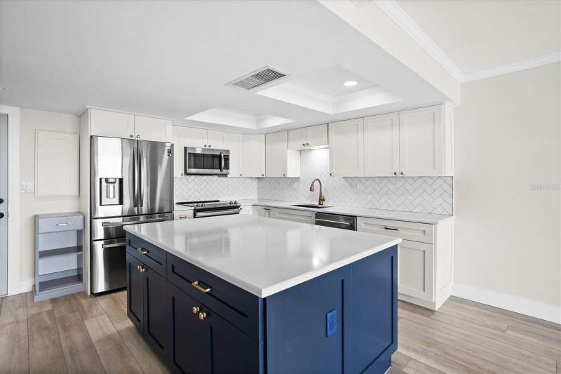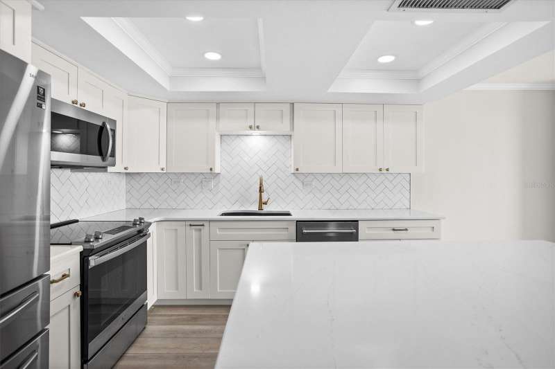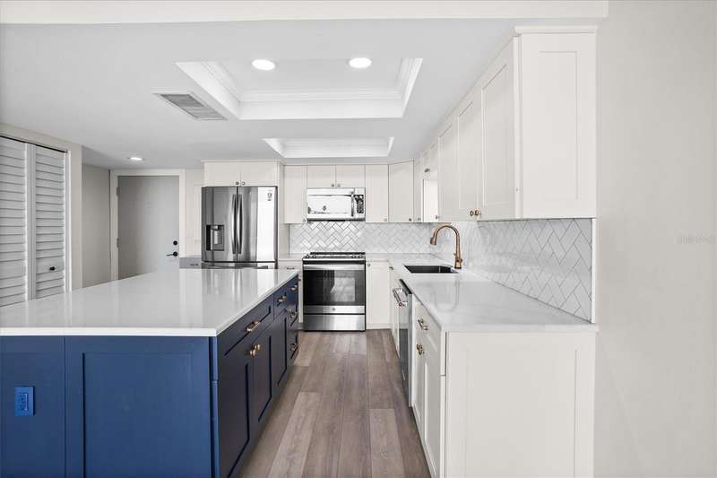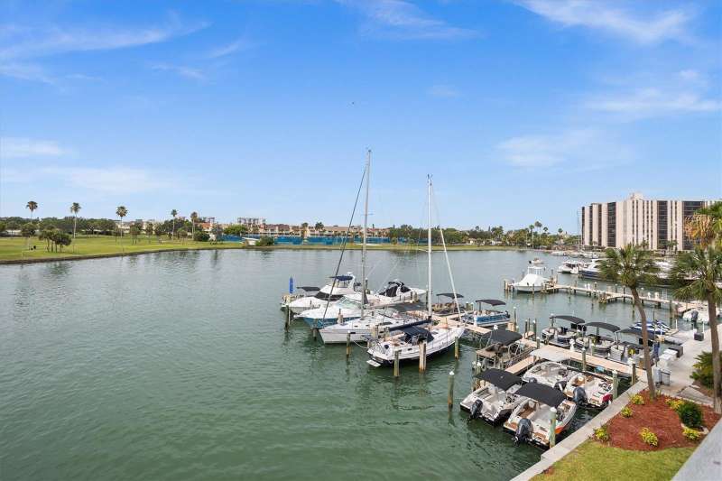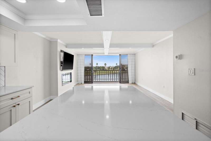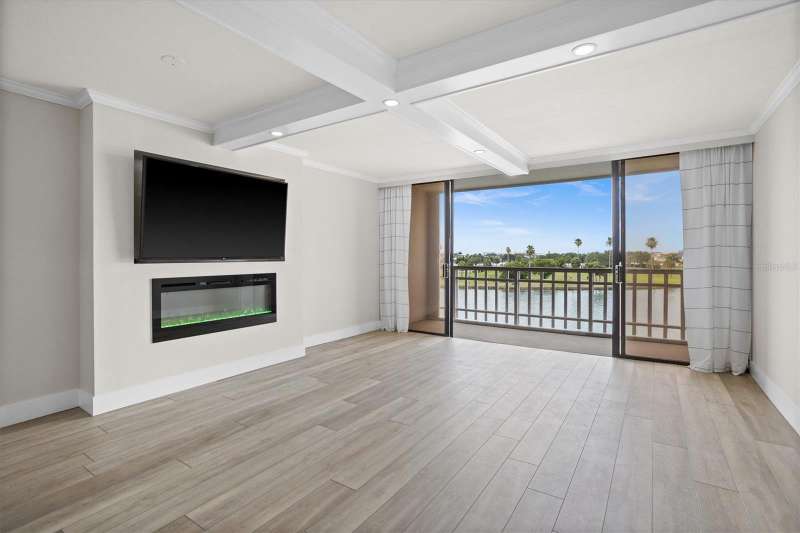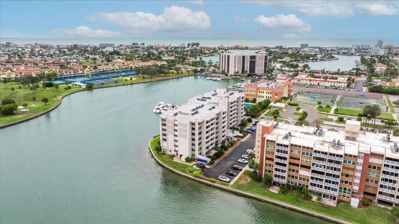 Discover the charm of Treasure Island. A barrier island that is known for 3 miles of wide white sand and vibrant atmosphere along Florida’s gulf coast . It is where Treasure Island Tennis club is ideally situated. This spacious 1 Bedroom, 1 1/2 Baths spans 885 sq ft. Step inside to a painted interior featuring a modern design, offering open views of the intracoastal from the living room and bedroom. The kitchen offers a large quartz island, shaker cabinetry, soft touch close a touchless gold faucet, stainless steel appliances. Updates include a heated fireplace with changing colors, a 65” t.v, coffered ceiling, additional padding for the vinyl plank flooring, recessed lighting with dimmer, custom closet, newer windows, newer sliding retractable sliding doors, an inside washer, dryer, and I assigned parking space 411 for added connivence. Residents experience the tranquilly of condo living with a keyed entry access , elevators, and a bike storage facility . Treasure Island is a vibrant community with shopping, dining and offers a variety of lodging options from resorts to small inns. The condo has had a milestone inspection and has NO upcoming assessments per hoa. Discover its charm!