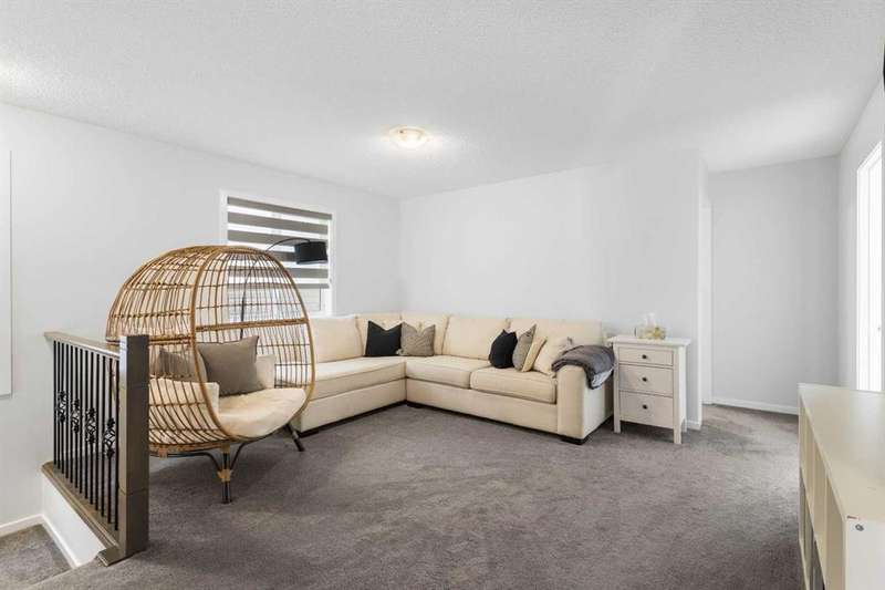 Unbelievable Deal! Immediate Possession. Welcome to this stunning 2-storey family home boasting 2305 SqFt throughout the main and upper levels with an additional 806 SqFt in the unfinished basement ready to grow with your family. The main level opens to a foyer with closet storage. Head into the heart of the home to a grand open floor plan perfect for entertaining. The kitchen is finished with crisp modern cabinetry, quartz countertops, stainless steel appliances and a large kitchen island with barstool seating. Off the kitchen is a walk-in pantry and mudroom that connects to the interior garage door for an easy grocery drop! The dining and living rooms are full of natural light as these rooms are framed with large windows. Off the dining area is a door that leads to the backyard making indoor/outdoor living easy. The main level has a storage room that is multi-use; a home office, kids play room or even storage. The main is complete with a 2pc bathroom. Upstairs holds 4 bedrooms, 2 full bathrooms, bonus room and laundry room. The primary bedroom is expansive and is complemented with a walk-in closet and 4 piece ensuite bathroom. Bedrooms 2, 3 & 4 are all great sized, each with great closet space. These bedrooms share the main 4pc bathroom with a tub/shower combo and extended vanity with storage. The upper level family room is a great addition for evening relaxation! The laundry room upstairs is a bonus as it is located near all the bedrooms. Downstairs, the unfinished basement has a separate side entrance and has rough-ins making it an easy space to transform to fit your family. The front attached garage and driveway allow for 4 vehicles to be parked at any time plus street parking is readily available too. This home has easy access to Stoney Trail and all amenities. Enjoy the perks of living in a brand new neighborhood with parks, playgrounds and walking paths! Call to view today!