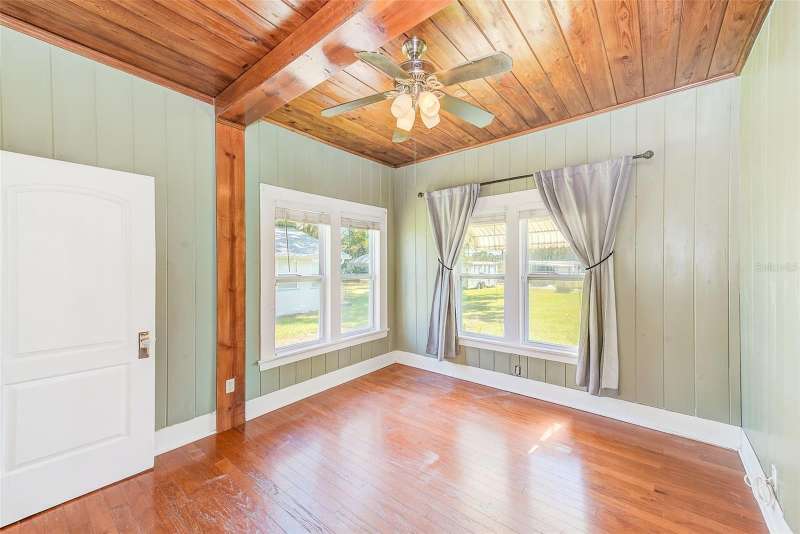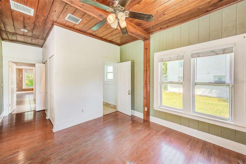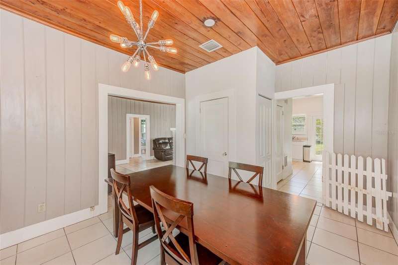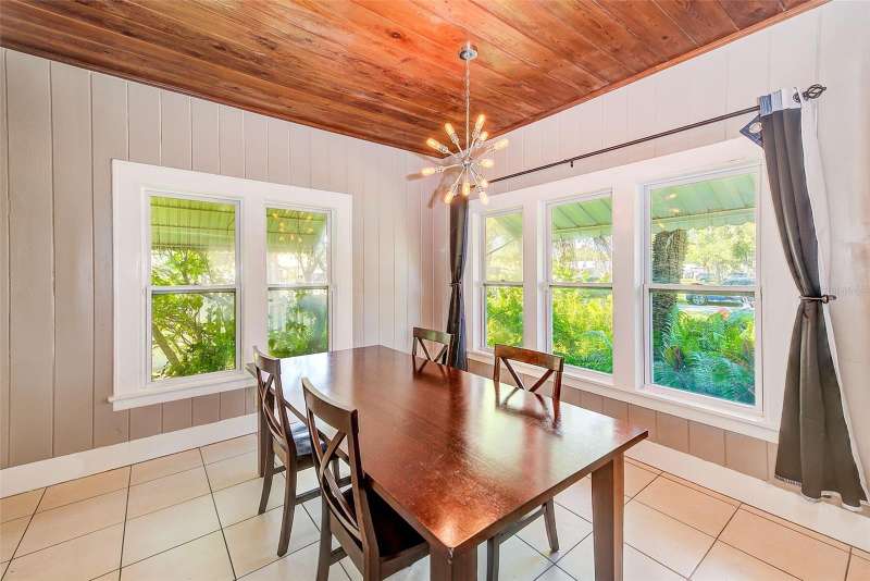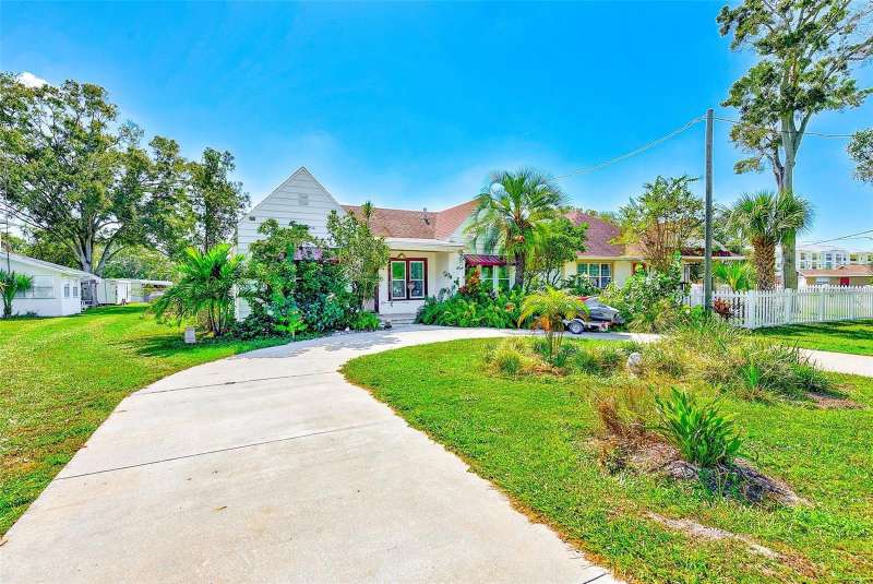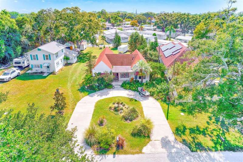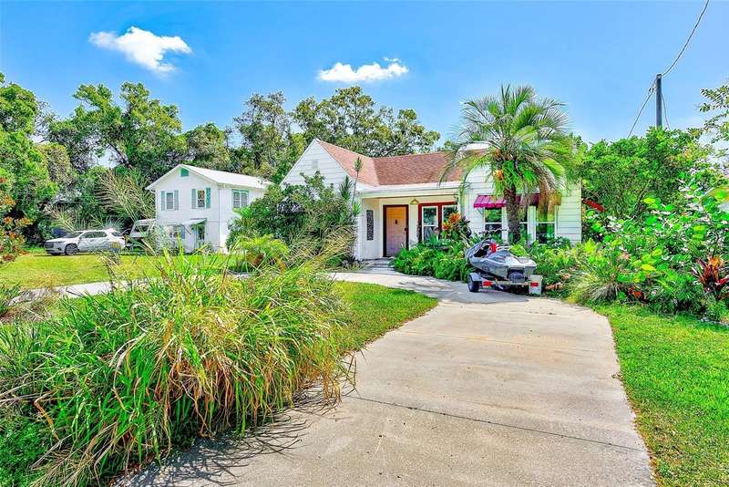 Step into Old Florida charm with this delightful 1925 bungalow that seamlessly blends historic character with modern conveniences. This two-bedroom, two-bathroom home showcases original architectural details including authentic doorknobs, doors, and soaring nine-foot ceilings that transport you back to the roaring twenties. The interior features tile and wood floors throughout, creating warmth and elegance in every room. You'll discover both a formal dining room and an eat-in kitchen space, perfect for everything from intimate meals to entertaining guests. The thoughtful 2015 renovation added a second bathroom while preserving the home's authentic charm, along with new air conditioning, updated ductwork, kitchen cabinets, and windows. The outdoor space truly shines with abundant room for entertaining, complete with potential for a fire pit area and gatherings under Florida's beautiful skies. The circular driveway adds both convenience and classic appeal to the property's curb presence. Located in the heart of Largo and situated in a non-flood zone, this home offers the perfect balance of historic charm and practical living. You're just minutes away from pristine Gulf beaches, the vibrant Largo Cultural Center, and convenient shopping destinations. Whether you choose to embrace innovative modern updates or preserve the timeless Old Florida character, this bungalow presents endless possibilities. The solid 1920s craftsmanship provides an exceptional foundation for creating your dream home in this desirable Largo location.