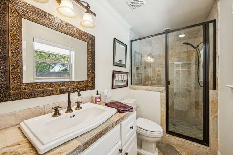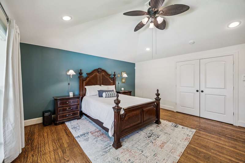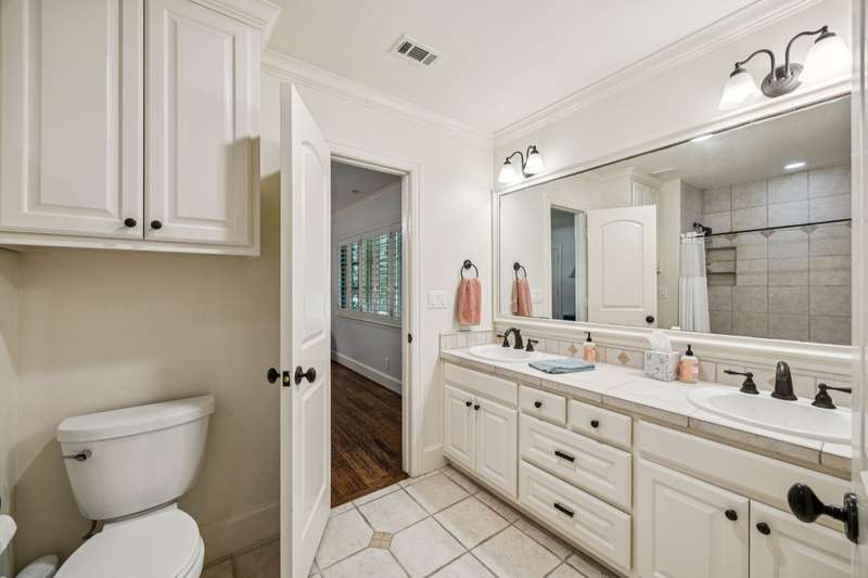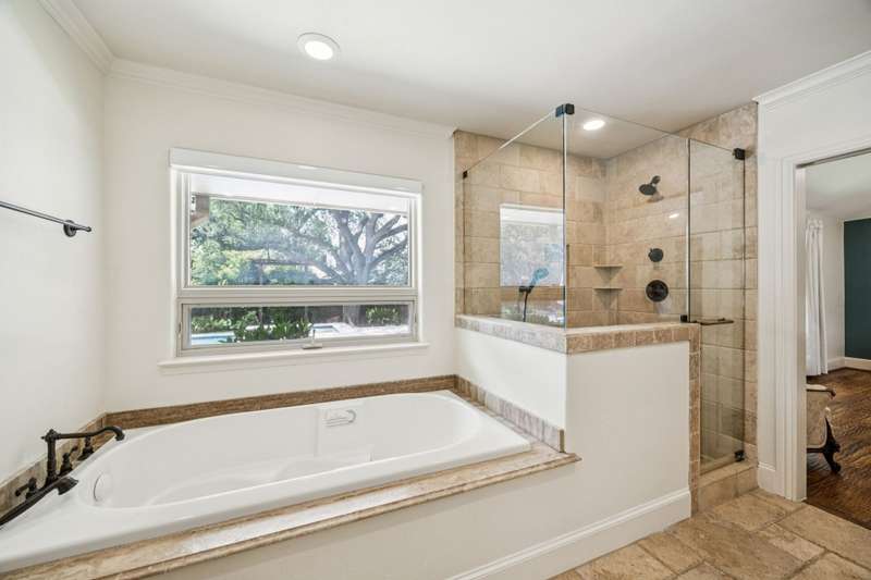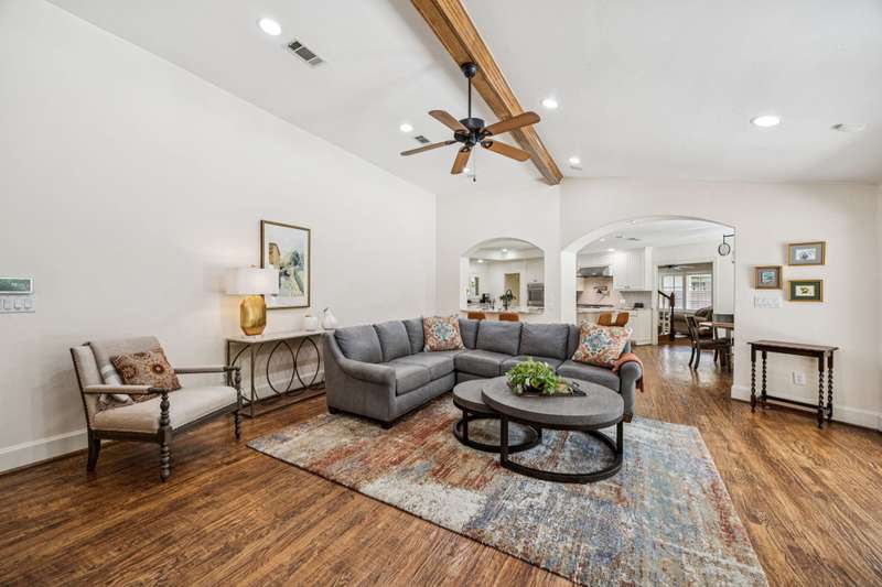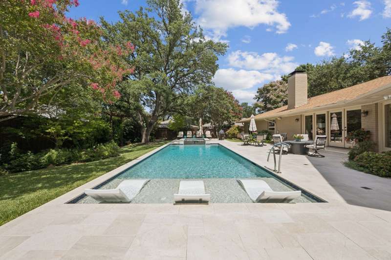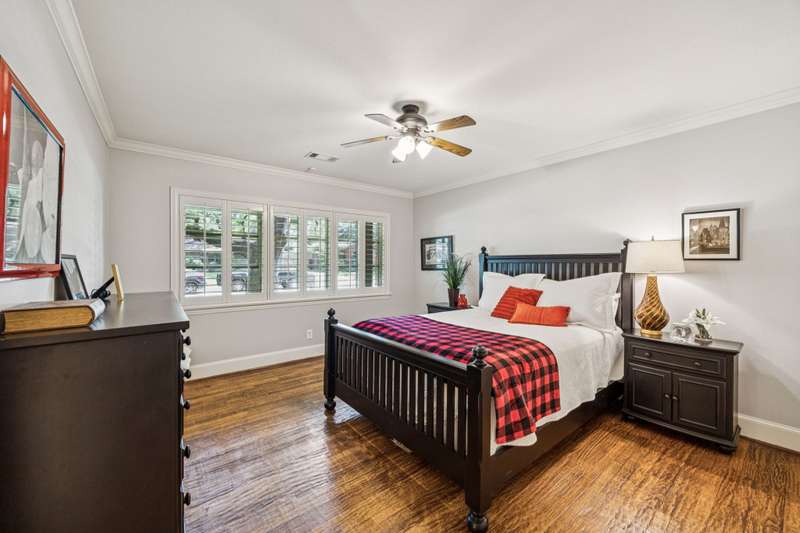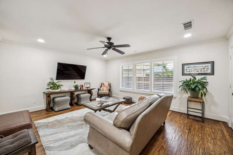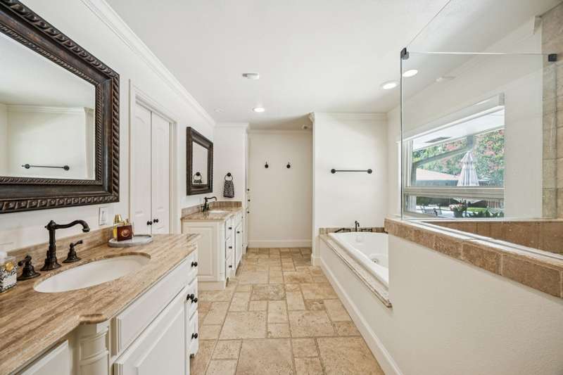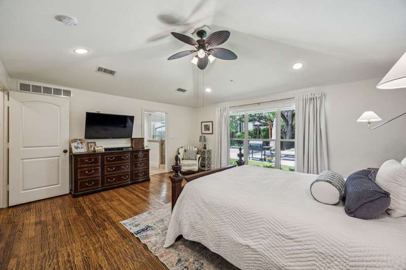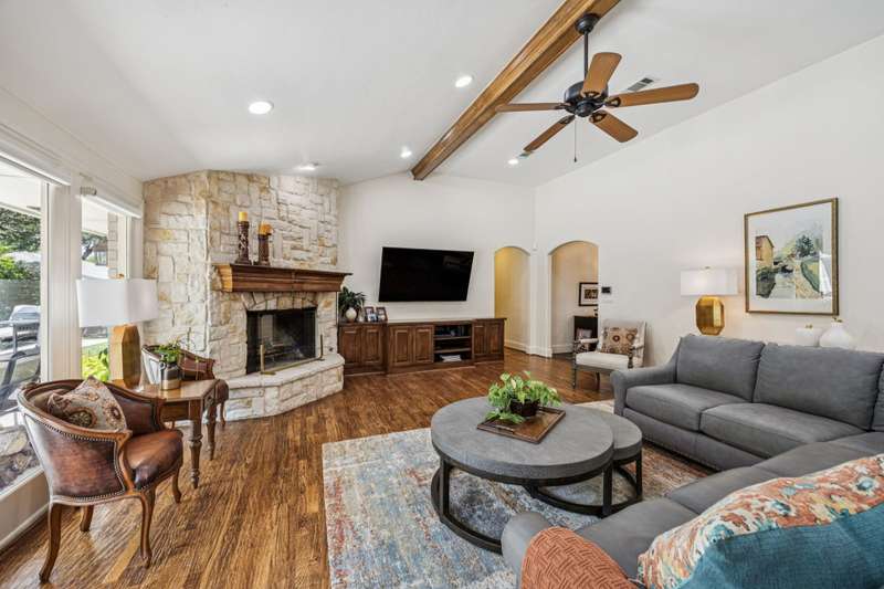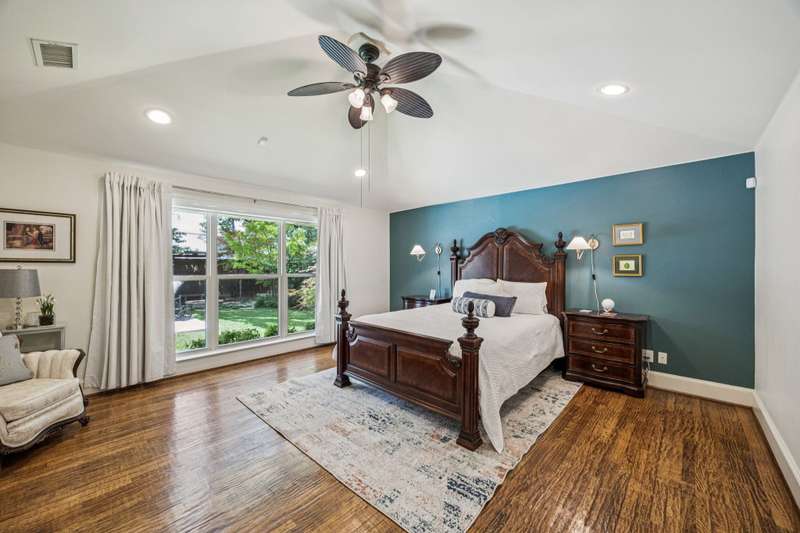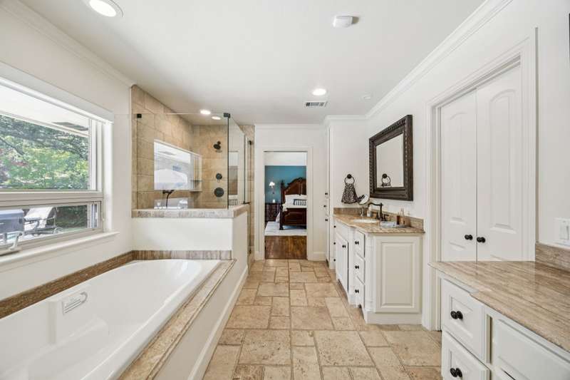 Meticulously maintained in desirable Eudora Estates on oversized lot with inviting front covered seating porch, grand FOYER, arched doorways and custom features throughout. Generous size FORMAL DINING at front of home comfortably accommodates a large dining table, decorative chandelier, recessed lighting, tray ceiling and appealing faux fireplace. Eat-in KITCHEN w BREAKFAST BAR, stainless appliances, granite counters, tile backsplash, 6-burner Thermador gas cooktop, vent, double ovens, dishwasher & microwave, built-in Jenn Aire refrigerator, center island w storage, walk-in pantry, Butler's pantry w custom cabinets and wine chiller. BREAKFAST w wall of windows to maximize natural light, overlooks sprawling backyard & pool. OFFICE at front of home with wall of windows and built-in bookshelves w storage drawers. FAMILY room at rear of home boasts decorative wood beam, oversized stone gas-starter fireplace, built-in entertainment cabinets, rear access doors and windows with motorized shades with views of pool and backyard. PRIMARY ensuite with abundance of natural light overlooks backyard features granite counters, separate vanities, linen closet, ceramic tile, walk-in shower w glass door and panels, soaking tub w large window above, and walk-in closet. Upstairs boasts 4th BEDROOM w private full BATH and add'l LIVING. LAUNDRY w utility sink, storage closets, and room for second refrigerator. MUD room w wall of custom built-ins. Inviting private backyard features expansive heated diving POOL and spa, wrought-iron fence, custom wood arbors, ornatmental trees, and custom stone fire pit perfect for entertaining. Notable features include sculpted hardwood floors, vaulted ceilings, wood shutters, motorized shades, built-in bookcases, recessed lighting, alarm system, sprinker system, roof replaced in 2023, Rinnai tankless water heater, exterior lighting, mature landscaping, gated driveway, and so much more.