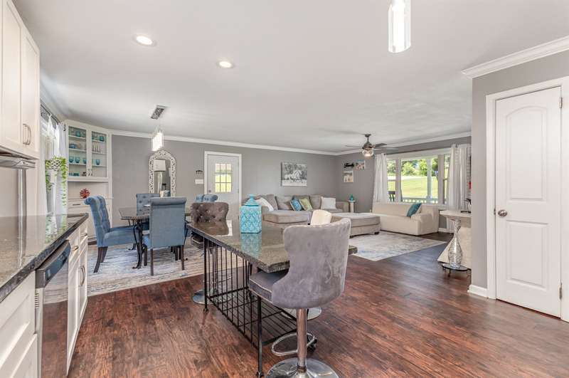 If you love quiet country living and a quick 10 minute drive to shopping and the interstate, this is your perfect location. The entire lower level is the owner's suite including a private bathroom with a huge tiled standing shower with seat and furniture style vanity, fireplace and sitting or office area in the sleeping space, and private door to the lower deck with a soothing view of the woods behind your home. The main level includes the kitchen, dining area and great room enhanced with beautiful, durable, LVP flooring, granite countertops, stainless appliances, and updated cabinetry. Upstairs is another oversize full bath with dual sink vanity, 2 large bedrooms and a bedroom perfect for guest space, office, or work out room. 2 levels of rear decking make your outdoor space versatile for relaxing, with room for outdoor dining and grilling or just relax on your covered front porch. Attached full size carport, ample parking, and enclosed storage area complete the outdoors. New septic tank installed 11/6/2025.