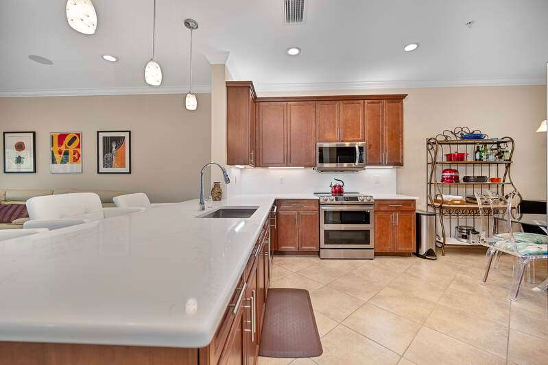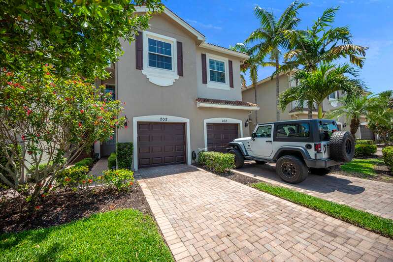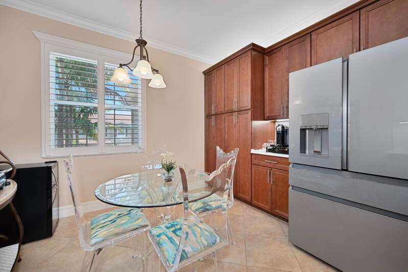 This coach home in Marbella Lakes comes with an impressive host of features, making it truly move-in ready and a must-see. Offering 3 bedrooms, 2.5 baths, and a spacious second-floor layout with large diagonal tile throughout the main living areas, the home delivers an open, airy feel enhanced by Southern exposure and serene lake views. The upgraded kitchen is a standout, featuring custom cabinetry and high-end appliances-including a GE Cafe refrigerator, Samsung two-level induction stove, and LG microwave with enhanced venting. The primary suite boasts a luxurious custom-designed walk-in closet and an ensuite bath with a soaking tub and a separate glass-enclosed shower. Additional upgrades include impact glass on all windows, rich wood flooring in the 3rd guest room/home office, plantation shutters, an electric roll-down shutter on the lanai powered by a Black & Decker station, a Rheem tankless hot water system, and a nearly new A/C (installed less than two years ago). The laundry room is plumbed for a sink and includes an LG washer and dryer for added convenience and a freshly sealed driveway and walkway. Located just minutes from Gulf beaches, Waterside Shops and Mercato, Marbella Lakes offers a resort lifestyle with an unbeatable lifestyle, including a clubhouse, a gym, two basketball courts, two tennis courts, a game room, social room, and both adult and children's pools-all managed by an onsite property manager. With its extensive upgrades and prime Naples location, this home is the total package.