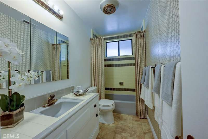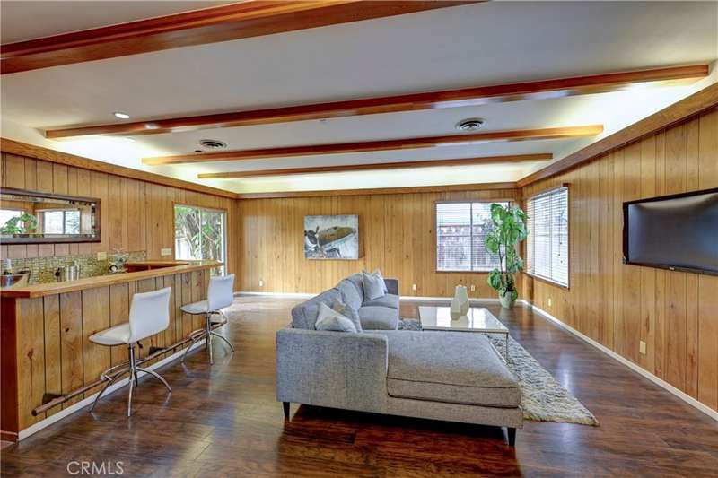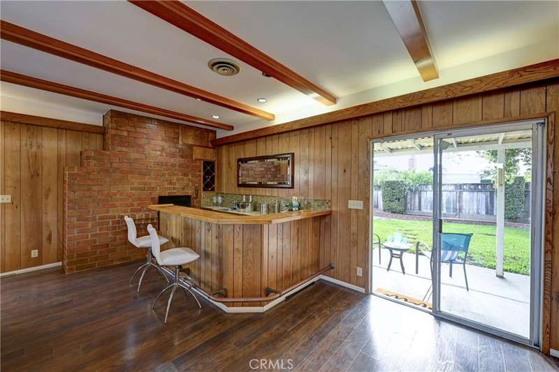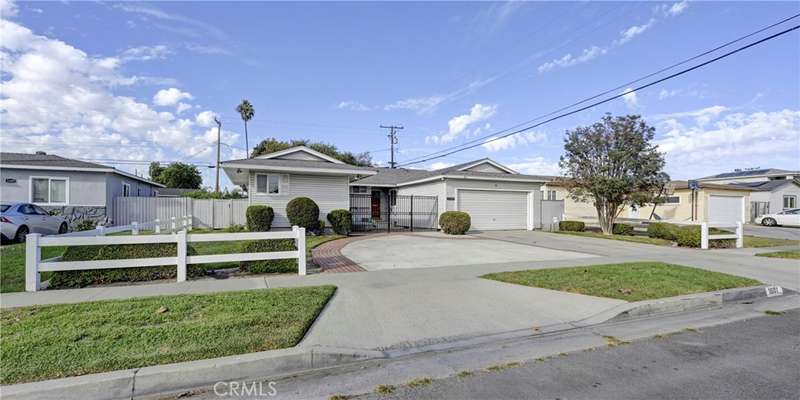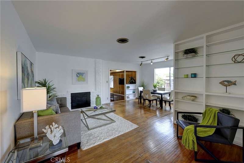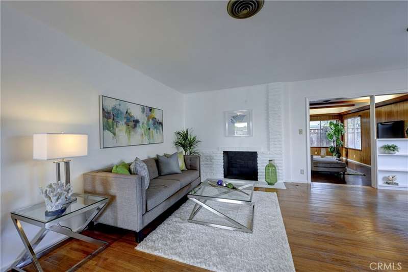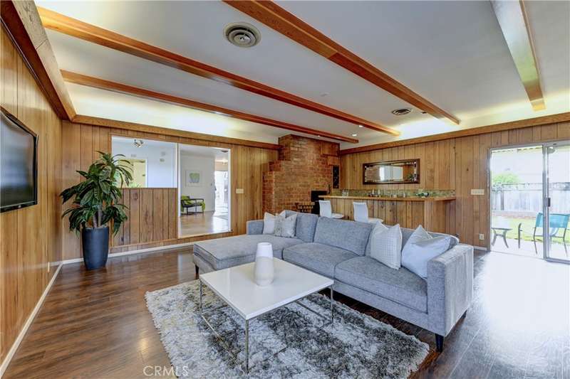 Welcome to this charming Mid-Century single-story home on a beautiful interior street in a pride-of-ownership Fullerton neighborhood. Curb appeal shines with a curved driveway that fits six cars, mature landscaping, and a private, gated brick porch perfect for relaxing outdoors. Inside, the bright living room features original hardwood floors, a cozy brick fireplace, and timeless character. Offering over 2,200 sq. ft. of living space on a 6,900+ sq. ft. lot, this home blends space and comfort. The open layout flows from the living and dining areas to a spacious step-down family room with vaulted wood-beamed ceilings, built-in bar and BBQ, and sliding doors to the backyard. The vintage kitchen, with preserved tile counters and double ovens, has direct garage access. Down the hall are four comfortable bedrooms and two bathrooms. The two-car garage includes storage, a utility sink, washer/dryer hookups, and water softener. Additional highlights include central heat, brand-new A/C, attic fan, in-home safe, built-in hampers, heaters in both bathrooms, outdoor flood lights, and freshly painted interior. Ideally located near schools, parks, freeways, and downtown Fullerton's dining and shopping, this home offers space, function, and convenience--all under $1 million.