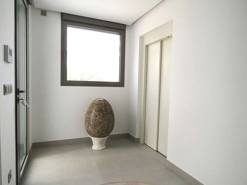 On the spacious 864 sqm plot, you have a private swimming pool that measures 23 sqm, an outdoor bathroom with shower, and a large driveway that leads to the underground parking with ample space for several vehicles.