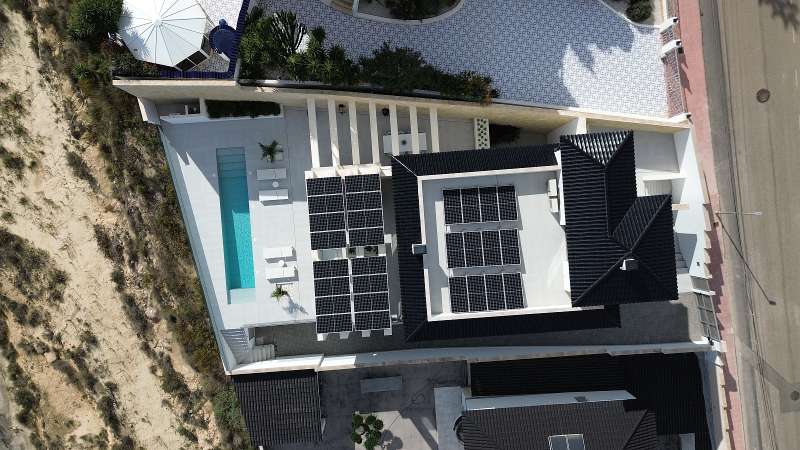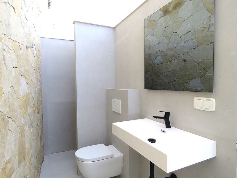 Upstairs, there are 3 sizable double bedrooms all with fitted wardrobes and en-suite bathrooms, the en-suite in the master bedroom has both a bath and a walk-in shower. On the roof of the villa, you have a rooftop solarium and several solar panels.
