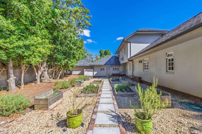 Situated in Proteaville this gracious, beautifully maintained home is surrounded by a private, lush, well-established garden. It boasts high ceilings with exposed trusses and ample natural light. Reception rooms have ambassadorial proportions. Beautifully designed with great flow the reception rooms interconnect with the large open plan kitchen. There is a scullery and a separate laundry. The living room opens out with doors onto the well-established garden leading to a covered braai area overlooking the swimming pool. Ample space for parking. A large family needing dual living would find this home very appealing. There are currently 11 bedrooms either ensuite or with no more than 2 bedrooms sharing a bathroom. Given the configuration of this home there is a portion of the home that lends itself to accommodation for staff or dual living. Additional features include an extensive solar panel installation and back up battery system. A vegetable garden is an added extra. It offers enormous versatility depending on one?ÇÖs needs. It has potential to be converted into a boutique guest house or perhaps a clinic given the right concessions from the Municipality. Alternatively, given that the erf is 3888 sqm it might be an option for someone to develop the land. This beautiful property needs to be seen to appreciate all that it offers. Call to make an appointment to view.