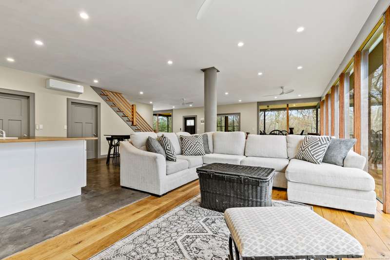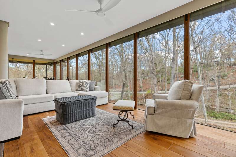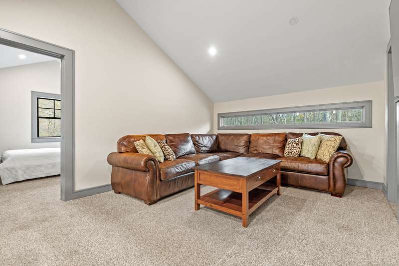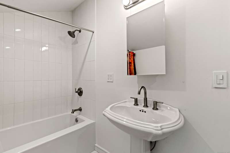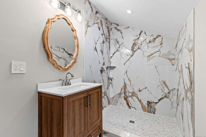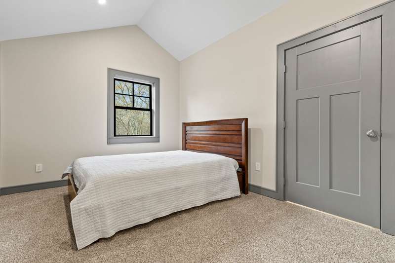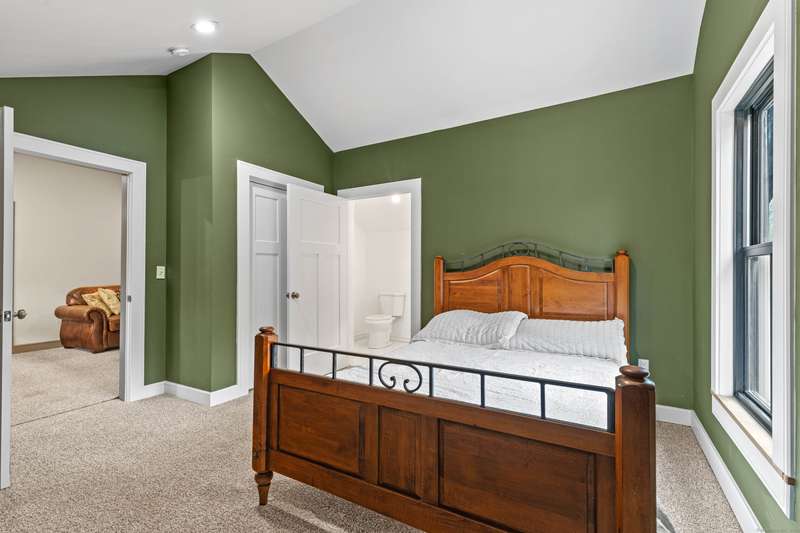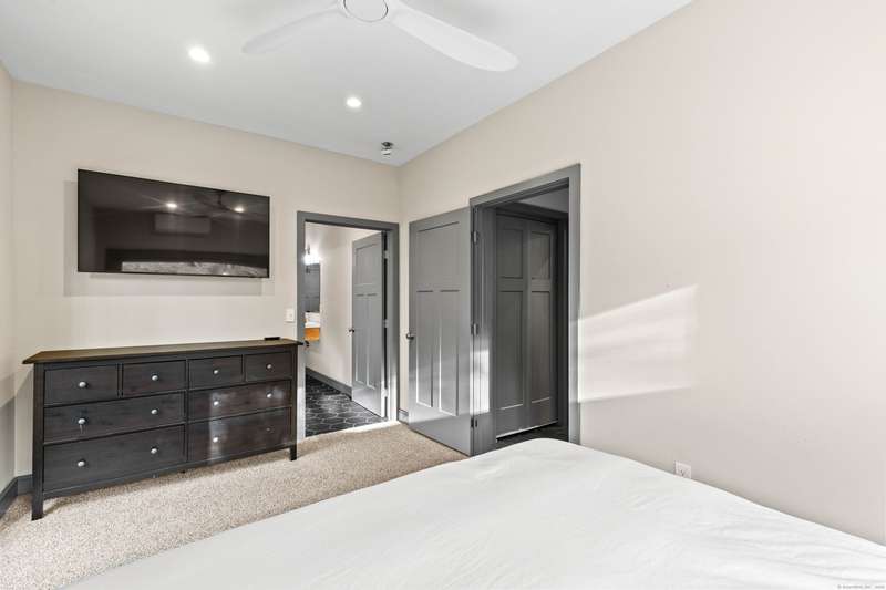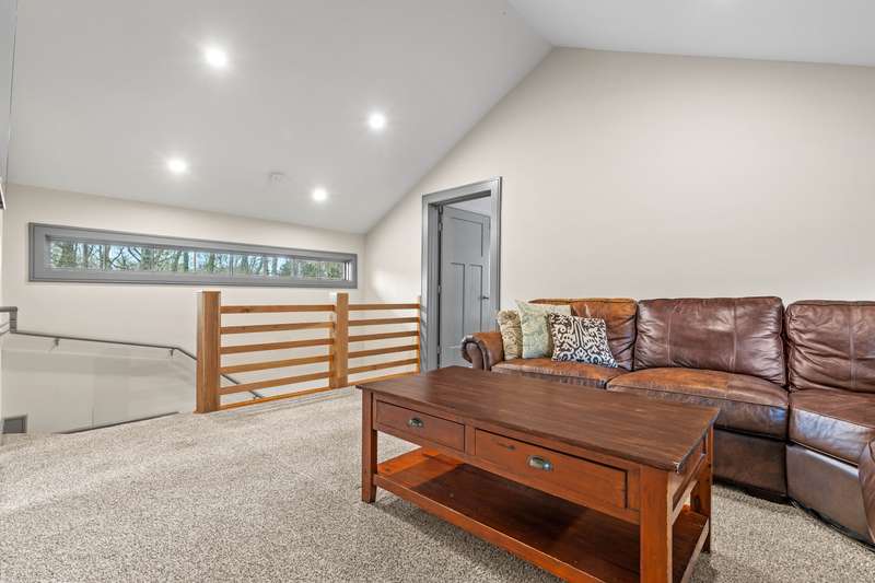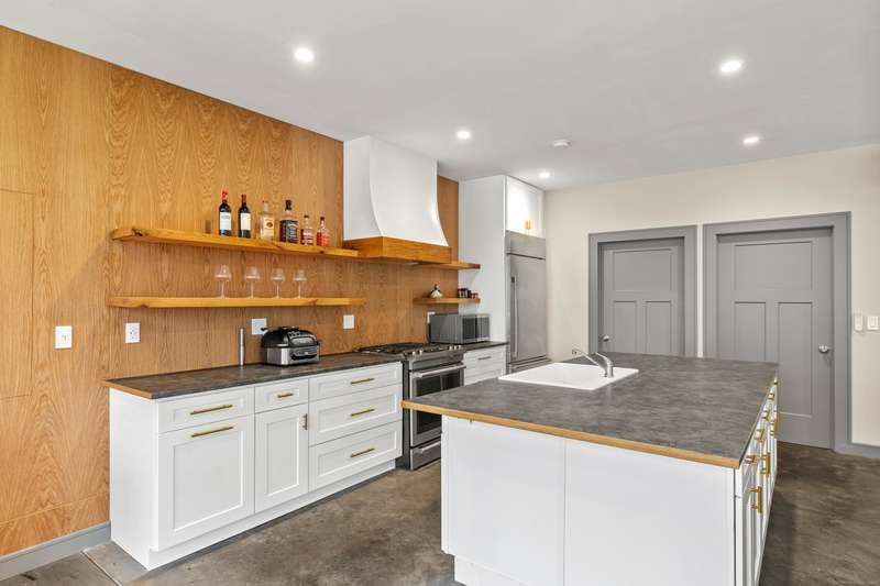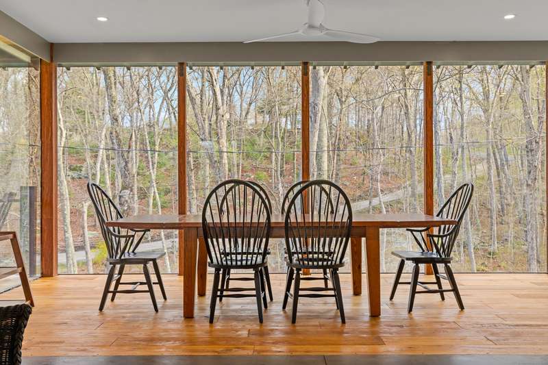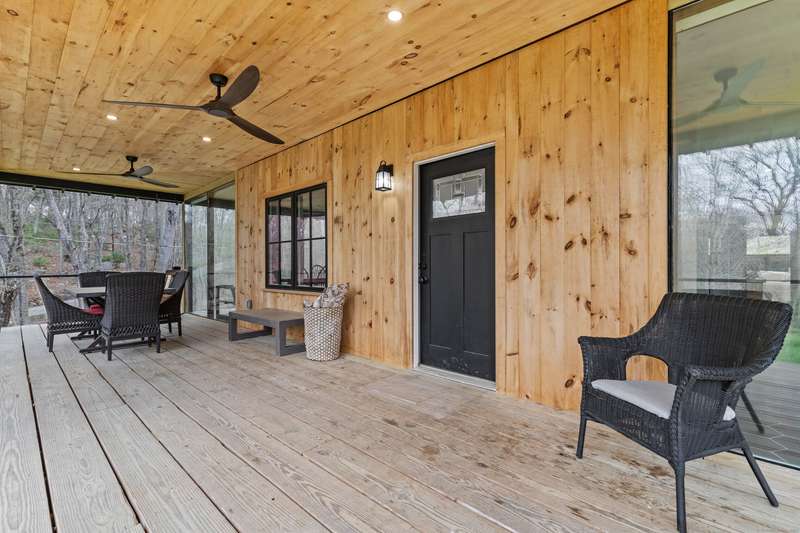 Set into the woods of Clinton, this 2,400 sq ft modern farmhouse is designed for the discerning, uninhibited buyer. With bold lines, glass walls, and a wide-open floor plan, it blurs the line between indoor and outdoor living. Inspired by Guilford's iconic Little Red Shack, the home celebrates transparency, minimalism, and architectural bravery. The main level features floor-to-ceiling glass, polished concrete floors, warm wood accents, and a sleek kitchen with floating shelves. The en suite primary bedroom is on the first floor and opens to the outdoors for a private retreat experience. Upstairs offers two more bedrooms, a stylish full bath, and a lofted second living area. Designer tile work, clean lines, and modern lighting complete the look. Just down the street are the Jesse Buell Woods, offering access to rugged hiking trails, perfect for adventurous buyers looking to connect with nature. This is not your average shoreline home-it's a livable work of art, nestled in the trees an