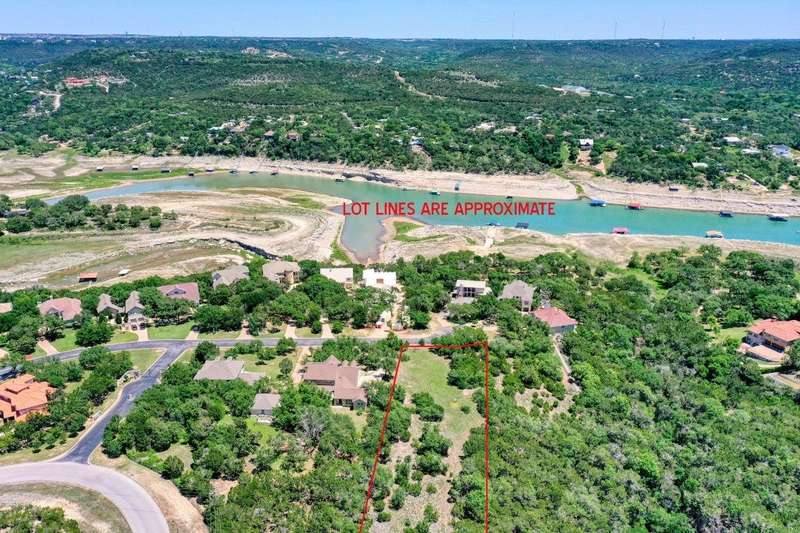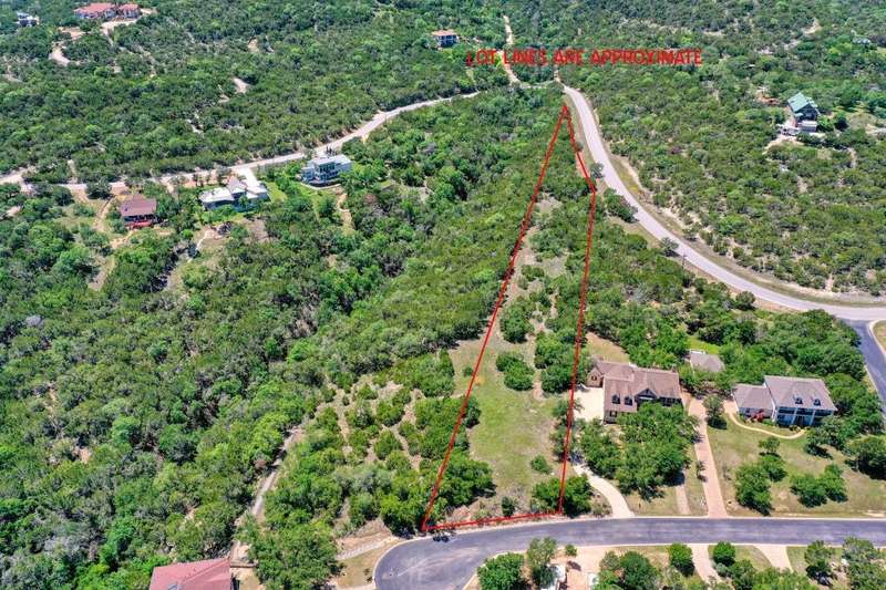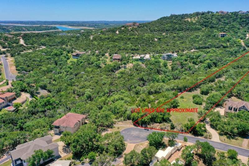 Upscale gated community with beautiful hill country and lake views. This 1.33 acre lot is very private with lots of nice trees, a level home site on a cul-de-sac. Sold as a vacant lot. The back wrought iron fence facing Reed Parks Rd has a gate for easy access to build.