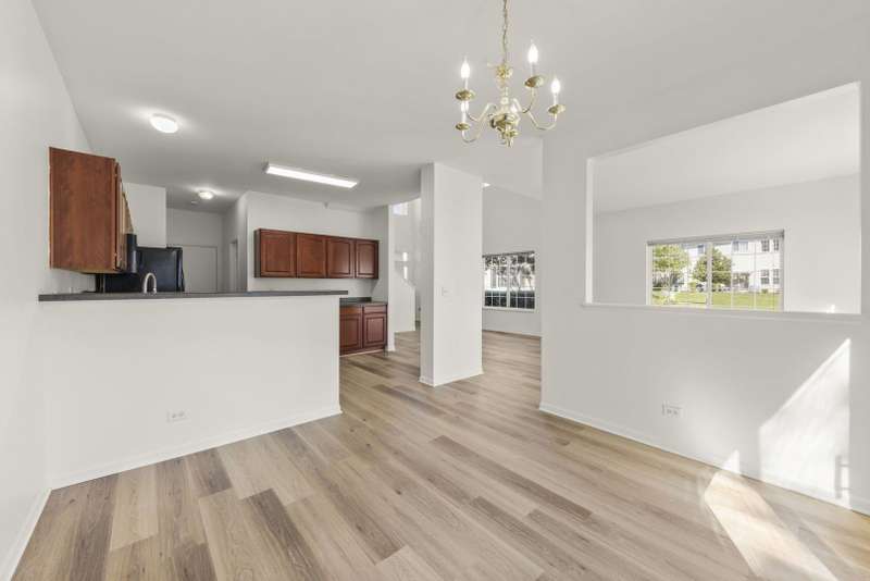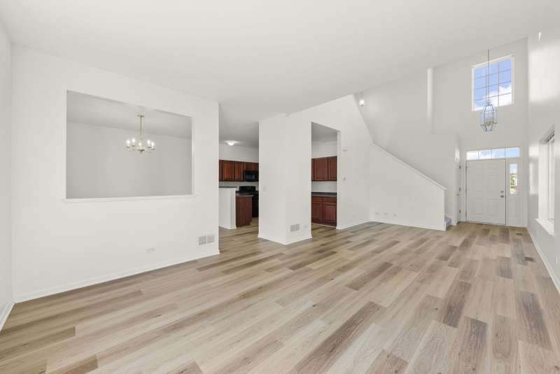 Welcome to this beautifully maintained townhome in the desirable Ryland at Lakewood Springs community, where convenience and lifestyle come together. Here, you can enjoy a low-maintenance way of living without giving up the amenities you love, including access to a sparkling pool, clubhouse, and neighborhood parks that are perfect for summer afternoons, holiday gatherings, and year-round recreation. With 3 bedrooms, 2.5 baths, and 1,585 square feet of freshly painted living space, this home is ready for you to move in and enjoy. From the moment you step inside, you're greeted by a dramatic two-story foyer that creates a grand first impression. New luxury vinyl plank flooring flows across the main level, tying together the open-concept layout. The kitchen is a true highlight with rich cherry cabinetry, an expansive butler's pantry, sleek black appliances, and abundant counter space for meal prep or entertaining. The adjoining dining area opens seamlessly into a bright and spacious living room, filled with natural light through oversized windows. A sliding glass door leads to your private patio, a perfect spot for morning coffee, grilling, or simply taking in the peaceful green space views behind the home. Upstairs, the private primary suite offers vaulted ceilings, a large walk-in closet, and its own bathroom with all the comforts you need to unwind. Two additional bedrooms provide plenty of space for family, guests, or a home office, while a second full bath ensures convenience for everyone. One of the home's most appreciated features is the upstairs laundry, making daily chores simple and efficient. The finished touches continue with fresh paint throughout, enhancing the move-in-ready feel. An attached two-car garage offers secure parking and extra storage, while the community's prime location between Yorkville and Plano puts shopping, dining, entertainment, and schools just minutes away. Outdoor enthusiasts will also appreciate the nearby trails, parks, and open spaces that make this area so appealing. Whether you're searching for your first home, a place to downsize without giving up space or amenities, or simply a move-in-ready home in a vibrant community, this townhome checks all the boxes. Don't miss your opportunity to call this charming property your own.