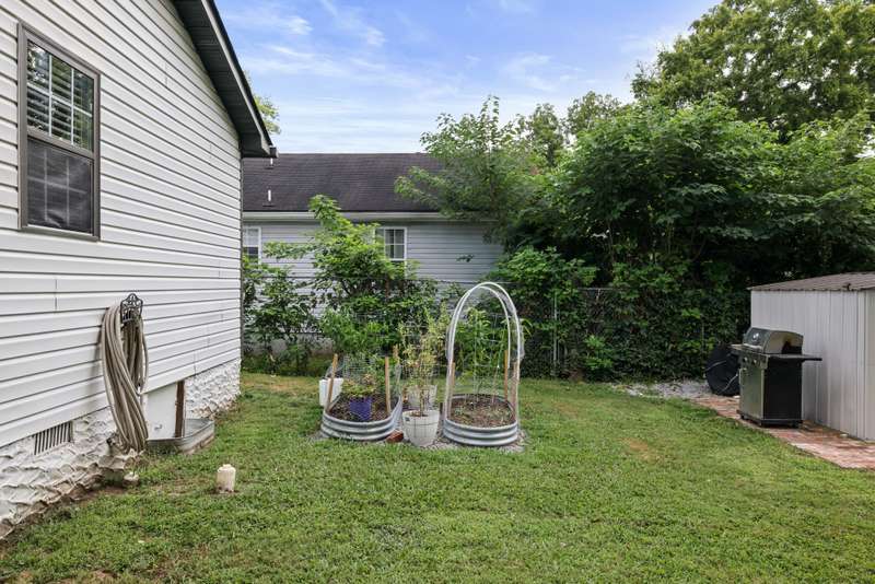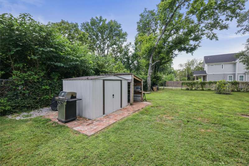 Centrally located - walk to coffee shops, restaurants, & the popular Buchanan Arts District - just minutes from Germantown, the Gulch, & downtown Nashville. This charming cottage home blends modern updates with timeless character. Step inside to a living room featuring shiplap walls, soaring ceilings, and craftsman-style molding around the doorways. The charm continues with reclaimed wood doors and antique door handles, adding a unique touch throughout. The kitchen is as stylish as it is functional, boasting stainless steel appliances and open shelving. Third bedroom is currently being utilized as a dining room (door can be put back up if desired). The primary suite provides a private retreat with a dual vanity and modern finishes, while the additional bedrooms offer comfort and flexibility. Outside, enjoy the covered front porch with charming landscaping, perfect for relaxing with coffee in the morning. A back deck overlooks the oversized yard - a rarity in this area, offering another inviting spot to entertain. Practical updates include a new HVAC unit (Dec 2024) and a new vapor barrier, ensuring peace of mind. The shed adds extra storage for all your outdoor needs. ZONING: DADU Overlay Section!! Up to 1% lender credit on the loan amount when buyer uses Seller's Preferred Lender.