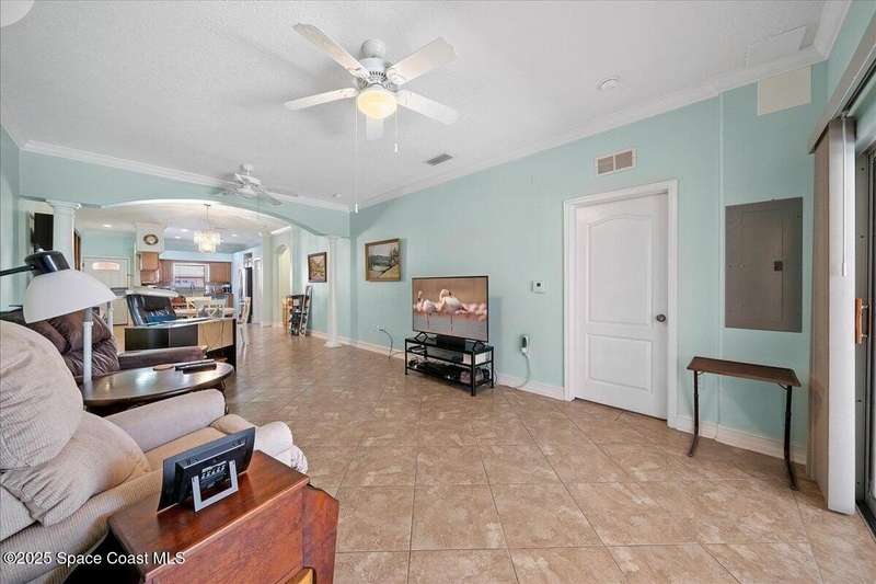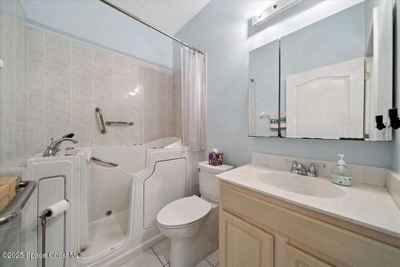 Well maintained 3-bedroom, 2-bath first-floor condo with 1 car garage right in Merritt Island. Designed with ease of living in mind, this unit features wide entryways and a mobility-friendly bathroom complete with a walk-in jetted tub. Enjoy cooking in the kitchen with a brand new electric range, newer appliances, pantry and gorgeous countertops - a great setup for everyday meals or hosting friends. The full-size stackable washer and dryer add convenience, and the covered porch is the perfect place to relax and soak in Florida's warm breezes. Ideally located just minutes from Cocoa Beach, Cape Canaveral Hospital, and rocket launch viewing spots, this condo offers low-maintenance living with a community pool and HOA managed exterior - so you can spend more time enjoying life and less time on upkeep.