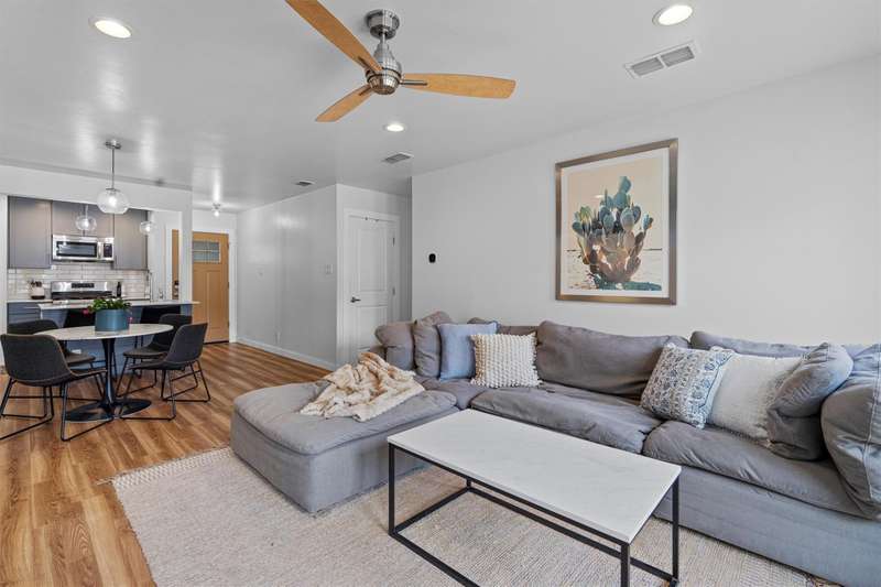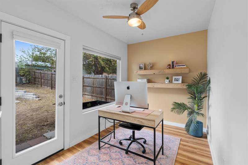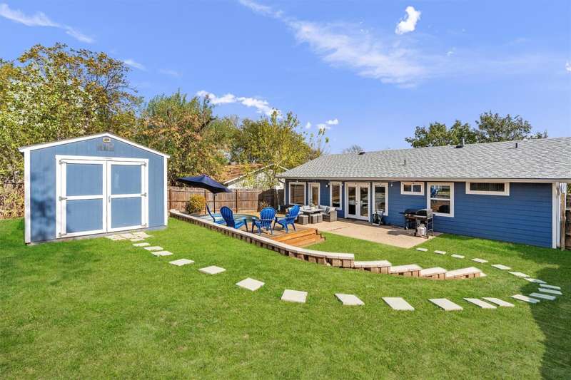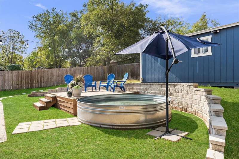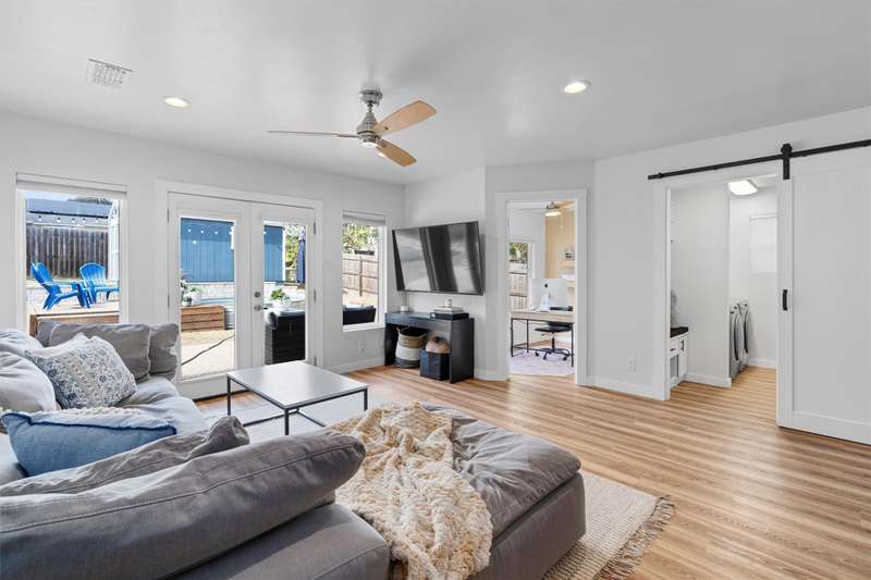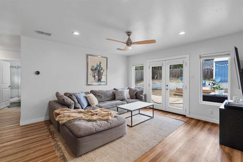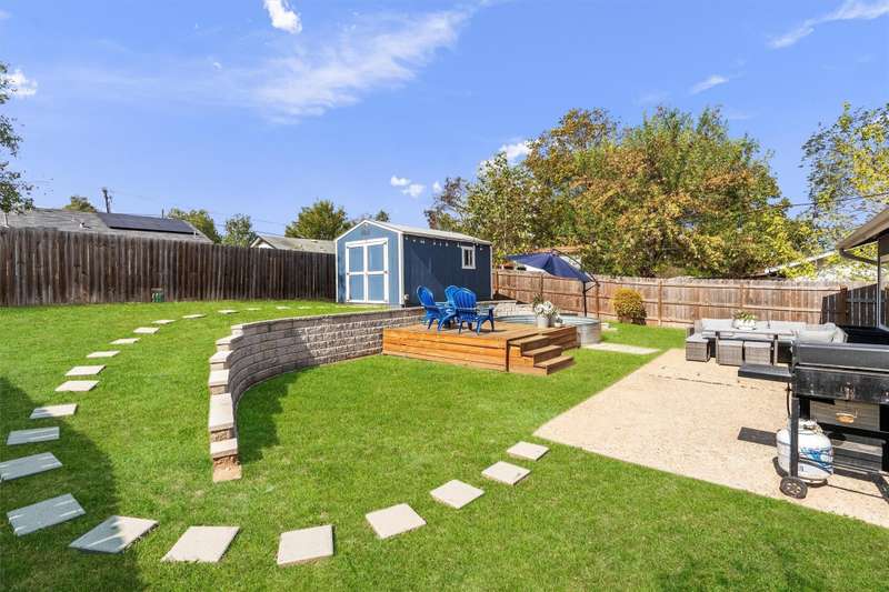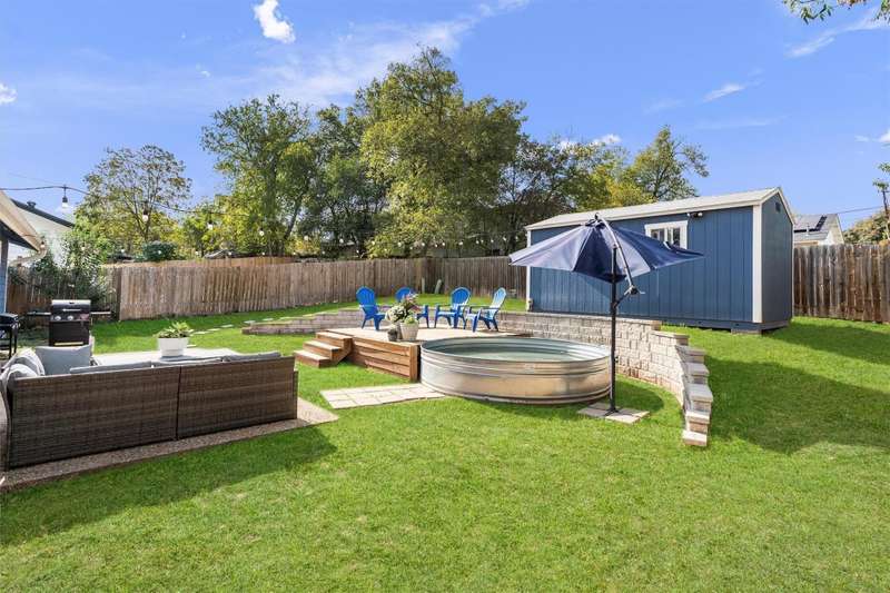 An entertainer's ideal home! Awesome open floor plan with easy-to-maintain LVF throughout, abundant natural light from large windows and french doors in the living room leading to a party yard - complete with a Cowboy Pool, several patios/decks and a finished shed that could be used for storage, an office, an outdoor bar, etc! This updated and well-maintained home offers three full bedrooms, plus an office with a lovely view of the backyard. The primary bedroom has a walk-in closet and an en suite bathroom. An indoor mudroom/laundry room off the garage gives the home even more functionality and convenience. Minutes from award-winning Leroy & Lewis BBQ, Sprouts, The Sage Brush and countless other amenities makes this house an awesome home for a busy Austinite!