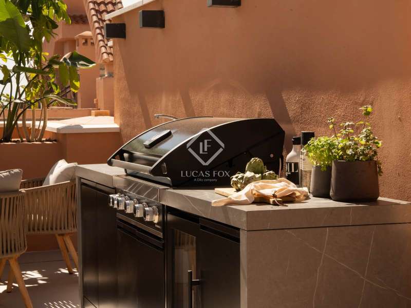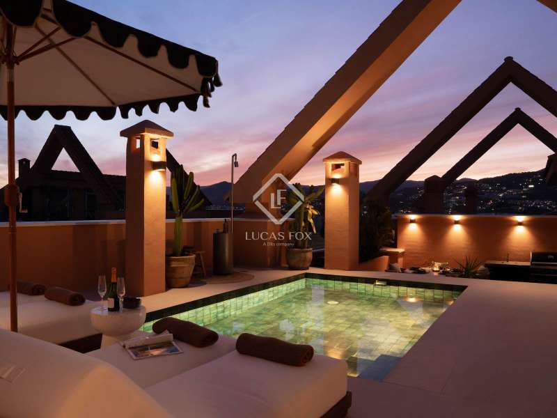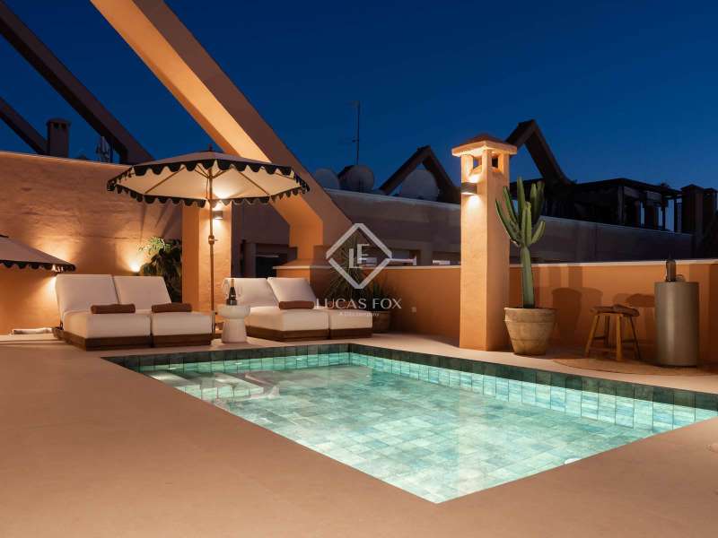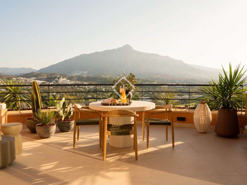 Step into sophisticated Marbella living with this fully renovated penthouse in the prestigious Magna Marbella residence. Designed to maximize light and views, the home boasts a spacious open-plan living and dining area with double-height ceilings, creating a sense of airiness and style. The modern kitchen and sleek bathrooms include underfloor heating for year-round comfort. The interior opens seamlessly to expansive terraces, perfect for entertaining or relaxing under the Mediterranean sun. A standout feature is the private rooftop oasis — complete with a plunge pool, generous sunbathing space, and an al fresco dining area ideal for evenings with friends and family. With 3 bedrooms and 3 bathrooms, this 173 m² apartment also offers 224 m² of terraces, two underground parking spaces, and a storage room. The gated community ensures 24-hour security and is surrounded by world-class golf, fine dining, shopping, beaches, and the vibrant energy of Puerto Banús. A rare turnkey opportunity to own a refined penthouse with unmatched views and lifestyle.