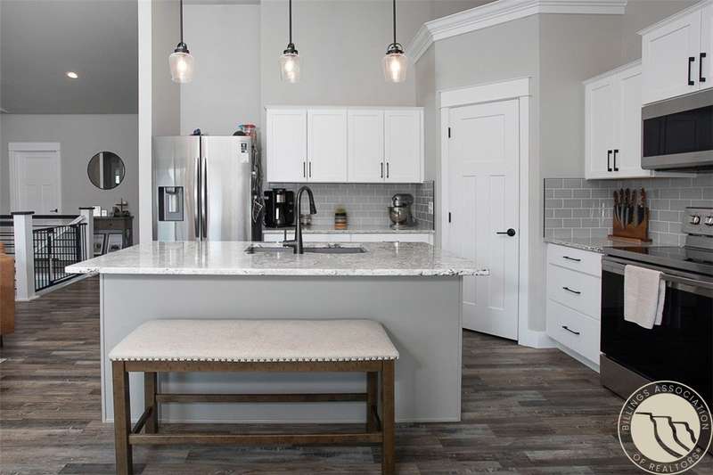 Welcome to this beautiful 5-bedroom, 3-bathroom home that perfectly blends comfort and style! Step inside and enjoy the convenience of main-level laundry and the warmth of a vaulted ceiling in the kitchen and dining area. The kitchen is a true highlight, featuring gorgeous quartz countertops and stylish cabinet pulls that tie the space together seamlessly. Large windows throughout the home invite an abundance of natural light, creating a bright and cheerful atmosphere in every room. The spacious downstairs offers the ideal space for entertaining with a built-in bar that makes gatherings both fun and functional. Step outside and you'll find a backyard retreat complete with a pergola, offering shade and protection while you relax or entertain outdoors. Downstairs is an oversized mechanical room that could serve as a home gym. This home has everything you need.