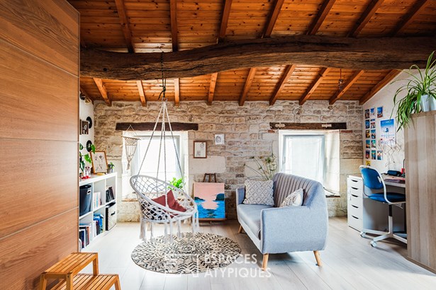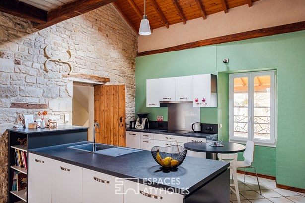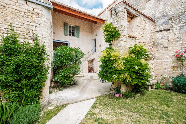 Hidden in the center of the village of Mauze sur le Mignon, this former factory has been completely converted into a charming residential house thanks to its intimate side and the character of its old stones.