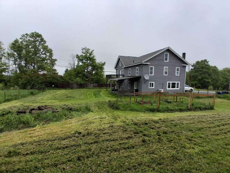 This country estate boasts a big, comfortable home situated on 16.8 acres of picturesque land, offering breathtaking views. The land includes 3 acres of fenced-in pasture land that has been used for farming over the past couple of years and is also home to hundreds of blueberry bushes. The interior of the home features a lovely kitchen and hardwood floors throughout the rest of the house, including the living room, dining room, and family room. Upstairs, you'll find seven spacious bedrooms, ample closet space and a den off one of the bedrooms. There are a total of 2.5 bathrooms for added convenience. The home is equipped with a trio of efficient systems: three split units for heating and cooling, a highly efficient boiler providing radiant floor heating on the first floor, and two Alaskan Coal stoves for supplemental warmth. Additionally, a staircase leads to a spacious attic with windows, offering potential for finishing into added living space. A massive separate garage provides ample space for a workshop or hobby area, perfect for those who enjoy tinkering or have a creative pursuit. With its perfect blend of country charm, beautiful land, and farming potential, this estate is an ideal haven for nature lovers, families, or anyone seeking a peaceful retreat or a working farm.