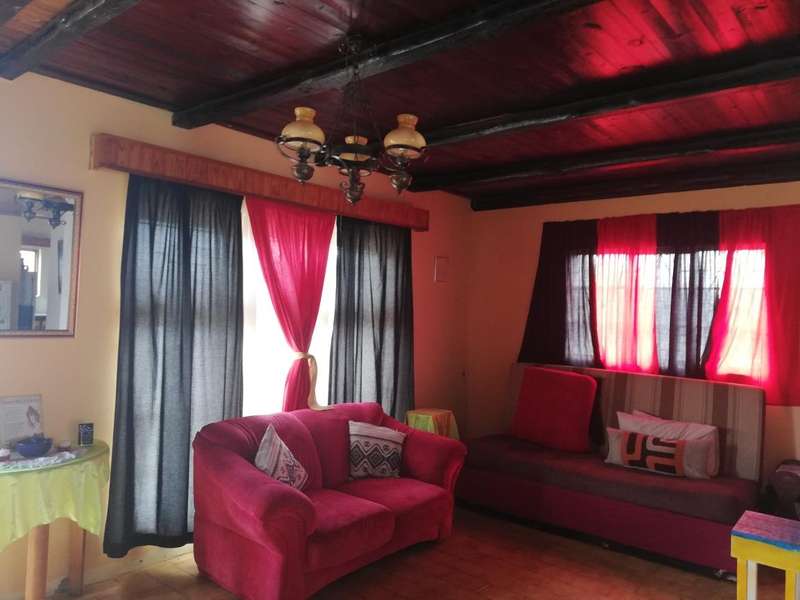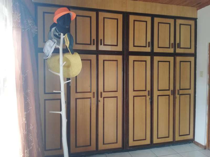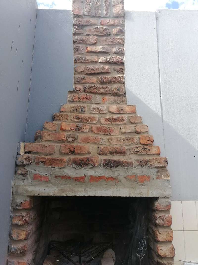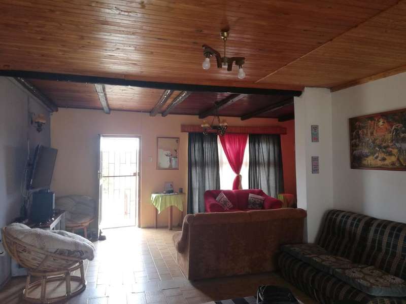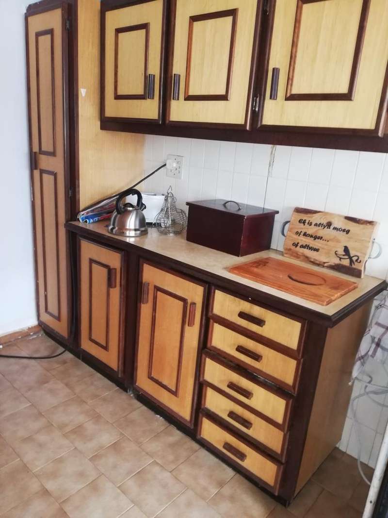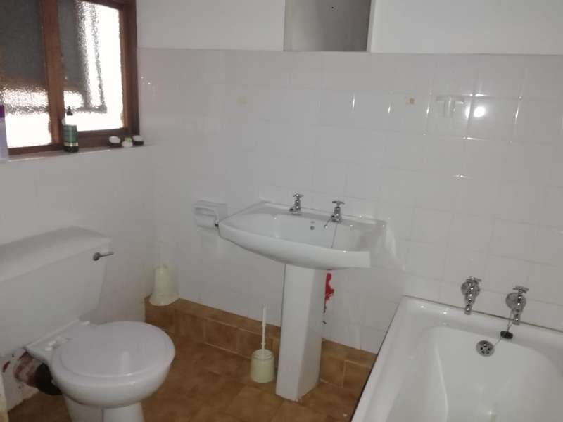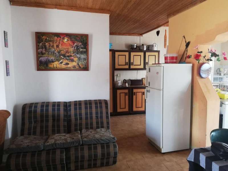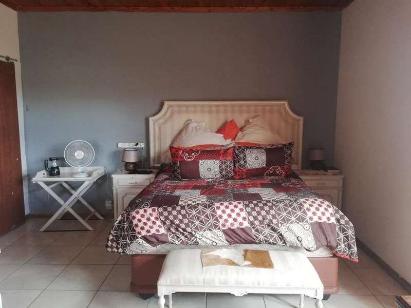The Main House is tiled, has knotty pine ceilings and offers you 3 Bedrooms all with build in cupboards, a fully equipped en-suite that forms a part of the main bedroom, a separate bathroom fitted with a basin, toilet and bathtub to serve the other 2 bedrooms, Semi open plan Kitchen fitted with build in cupboards as well as a pantry, Dining Room, Living Room, Single Garage fitted with roll up aluminium doors at the front and back of the garage for easy access and more parking space in the back yard, Courtyard with build in outside braai, an outside laundry room which can be converted into a man-cave, playroom or hobby room. Next to the laundry room in the outside building is another bedroom with bathroom equipped with a basin, toilet and shower which can also be used as staff quarters.