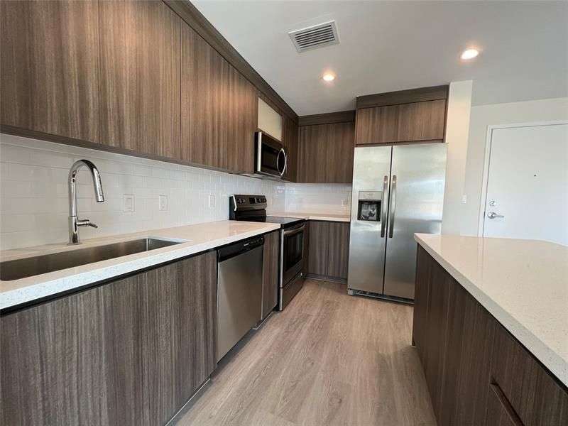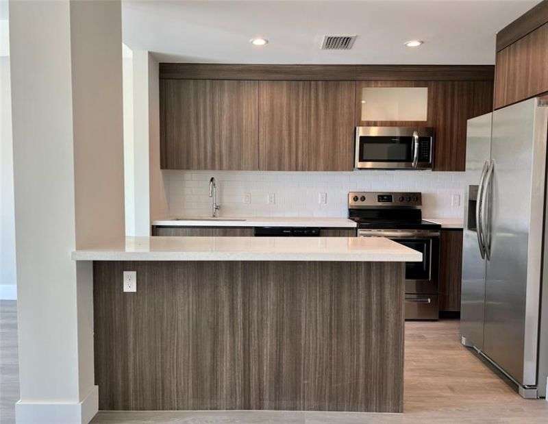 Live at Hollywood newest boutique condo. Offering modern living and a convenient location walking distance to shops and restaurants. Close to the beach. Fully equipped kitchen with stainless steel appliances. Modern and private building with assigned covered parking. Washer and dryer inside the unit. Brand new appliances. Bicycle storage.