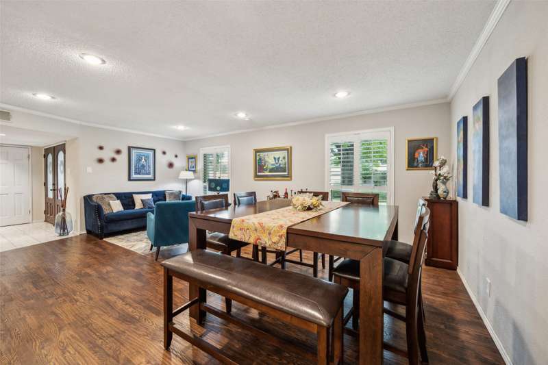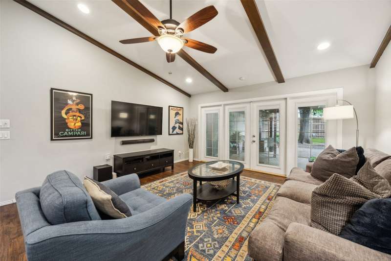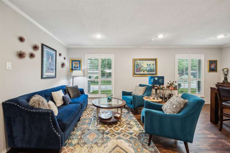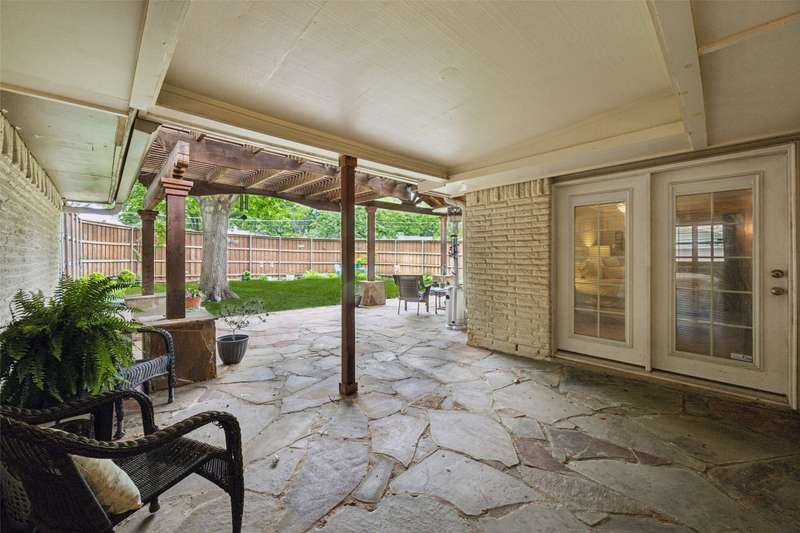 Nestled in Dallas sought-after private school corridor, this charming ranch-style home sits gracefully on a quarter-acre corner lot, surrounded by mature trees and lush landscaping. A formal entry welcomes you into light-filled living and dining areas accented by hand-scraped hardwood floors. The spacious galley kitchen, complete with a walk-in pantry, connects seamlessly to a warm den featuring vaulted ceilings, a dry bar, and French doors that open to an expansive 620-square-foot covered patioideal for entertaining year-round. The primary suite offers a serene retreat with private patio access, an ensuite bath, and walk-in closet. Three additional bedrooms share a thoughtfully designed hall bath, while a versatile third living area, full-size laundry room, and two-car garage provide everyday convenience. Recent upgradesincluding a Trane HVAC with UV light, PEX plumbing, stainless steel appliances, and freshly sodded front and back lawnsenhance the homes timeless appeal. With exceptional proximity to top-tier private schools, this property combines comfort, style, and location in one inviting package.