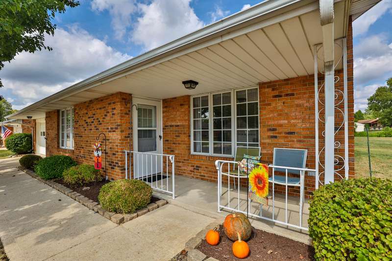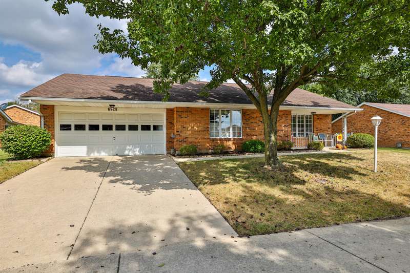 Popular Willow Creek Estates! Located in quiet, 55+ maintained community. Free up your time & live an easier lifestyle. Ready to move into, this home offers 1,343 square feet of living with 2 bedrooms, 2 full baths, & oversized 2-car attached garage. Quiet community, with green space to the rear for a peaceful view. Enjoy & relax with your morning coffee on the inviting covered front porch. Eat-in kitchen with lots of cabinets & counter space. All appliances stay, including washer & dryer. Dishwasher, microwave & disposal new in September 2025. Spacious bedrooms, one with walk-in closet & the other with double closets. Large utility room. Furnace & AC new 2021. Water heater 2019. HOA fee $95/month includes lawncare, trash removal, leaf pickup, snow removal of streets & maintenance of common areas. Convenient to I-70, I-75, WPAB & international airport. Close to Huber Heights & Vandalia shopping, grocery, restaurants, YMCA, Aquatic Center & Rose Music Center. All brick for easy exterior maintenance. No steps to climb. No mowing! Garage has workshop area. Seller providing 1-year Cinch Warranty to buyers for peace of mind. Easy to show. Occupancy at closing!