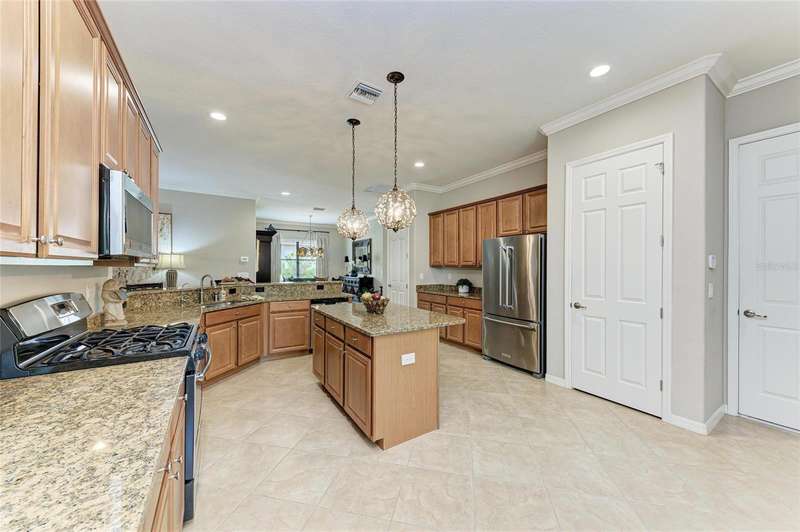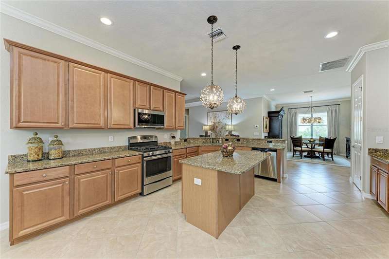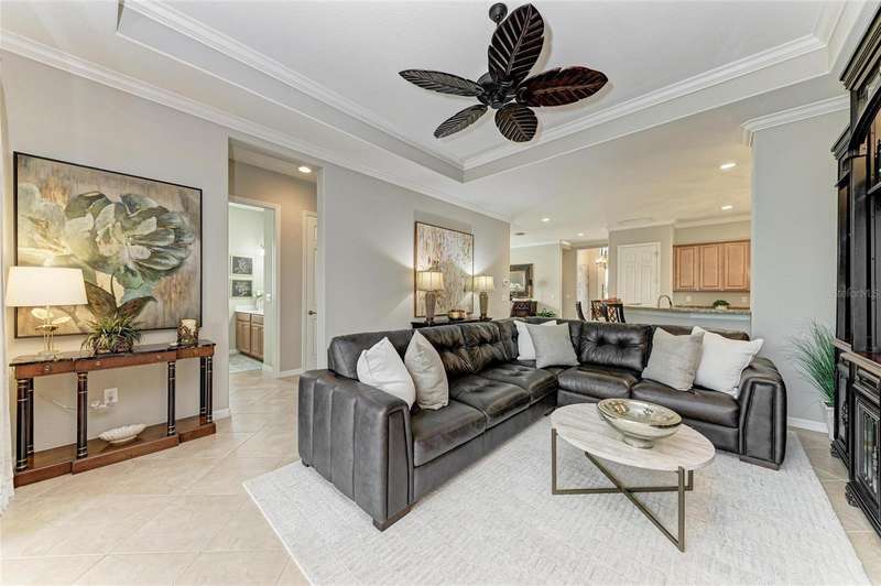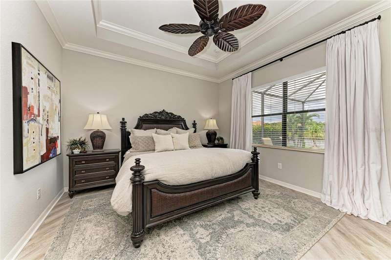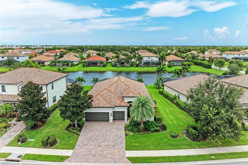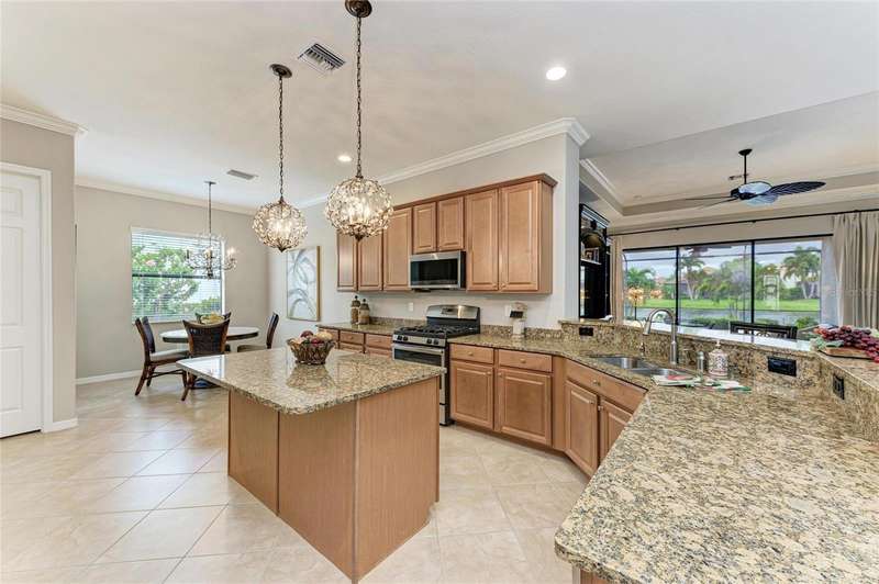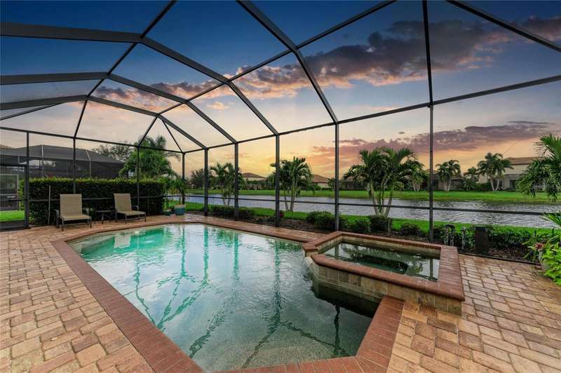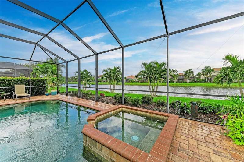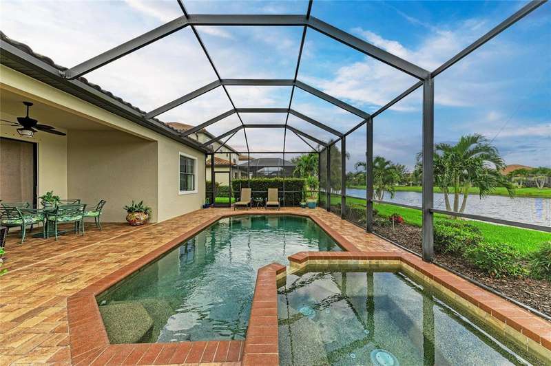 Welcome to Bridgewater at Lakewood Ranch, a highly desirable gated and maintenance-free community offering elegance, convenience, and the quintessential Florida lifestyle. Nestled in the heart of America’s #1 master-planned community, this popular Stanford model having a new A/C, rain gutters and freshly painting exterior combines a spacious open floor plan with thoughtful design, making it ideal for entertaining, hosting guests, or enjoying everyday living. This four-bedroom, three-bath meticulously maintained home with a three-car garage immediately impresses with its lush landscaping, tiled roof, and pavered driveway. Step through the etched glass front door into a light-filled interior where 10-foot ceilings, crown molding, and expansive views of the lake and pool set the tone for refined yet relaxed living. At the heart of the home, the gourmet kitchen is both stylish and functional, featuring granite countertops, solid wood cabinetry, Stainless steel appliances, a breakfast bar, island bar, and spacious eat-in nook. Whether cooking for family or entertaining a crowd, this kitchen was designed to impress. The open-concept great room flows seamlessly outdoors through three-panel sliding doors, framing tranquil views of the sparkling pool, spa, and serene lake beyond. The owner’s suite is a private retreat with a tray ceiling, a custom-designed walk-in closet, and an ensuite bathroom offering dual vanities, a soaking tub, and a glass-enclosed walk-in shower. A split floor plan provides privacy for family and guests: two bedrooms share a Jack-and-Jill bath, while the fourth bedroom features its own ensuite. Every detail has been thoughtfully enhanced, including custom lighting, recessed illumination inside and out, upgraded angled tile, rich laminate flooring, custom fans, and under sink reverse osmosis system. Outdoors, your private oasis awaits. The extended screened lanai features a gas-heated pool and spa, with custom lighting that creates a spectacular atmosphere at the touch of a button. With tranquil views, evenings here are nothing short of magical—perfect for dining al fresco, entertaining, or simply relaxing under the stars while taking in the beauty of Florida wildlife and lakeside foliage. Bridgewater at Lakewood Ranch is a friendly community of just 275 single-family homes—no townhomes or condos—offering manicured landscaping, walking paths, a playground, and a lakeside gazebo. With low HOA fees covering lawn care, reserves, and common area maintenance, residents enjoy true ease of living. Ideally located, you’ll be just minutes from University Town Center Mall, Benderson Park’s world-class rowing facility, Lakewood Ranch Hospital, championship golf, fitness centers, and an abundance of dining and shopping options. Families will appreciate proximity to top-rated schools, including Lakewood Ranch Preparatory Academy. White-sand Gulf Coast beaches and vibrant downtown Sarasota are a short drive away, while I-75 provides convenient access to Tampa, St. Petersburg, and beyond. Whether you’re seeking refined design, modern upgrades, or the perfect Florida lifestyle, 13117 Ramblewood Trail delivers it all-and more! ________________________________________