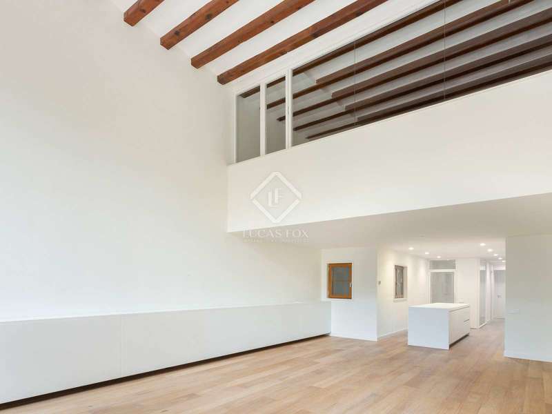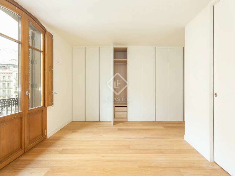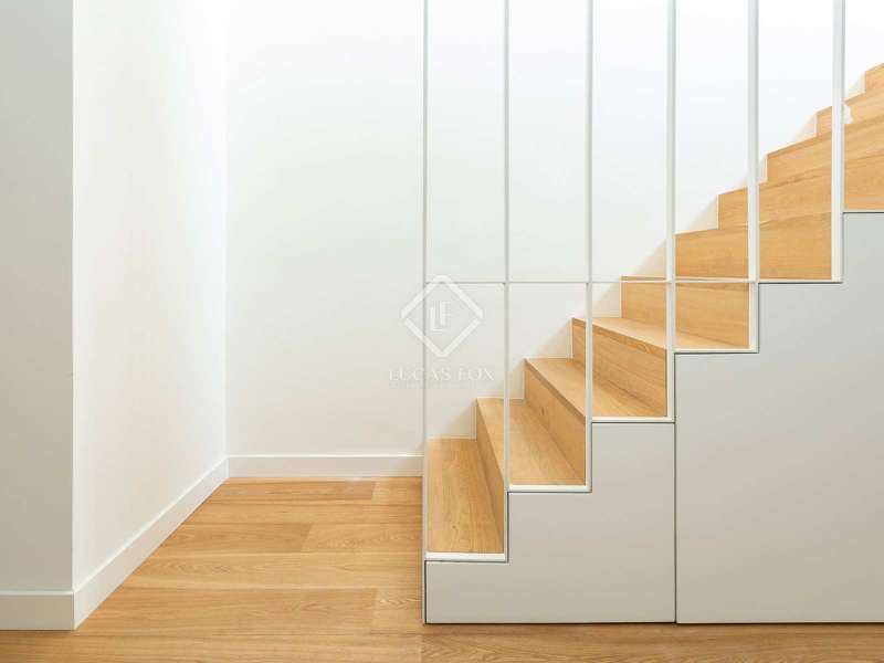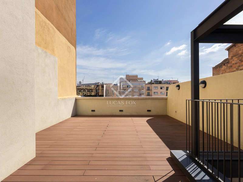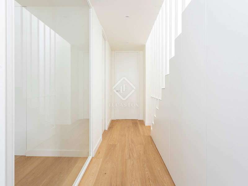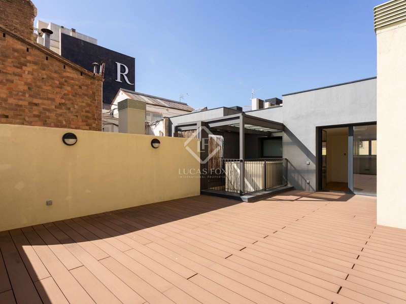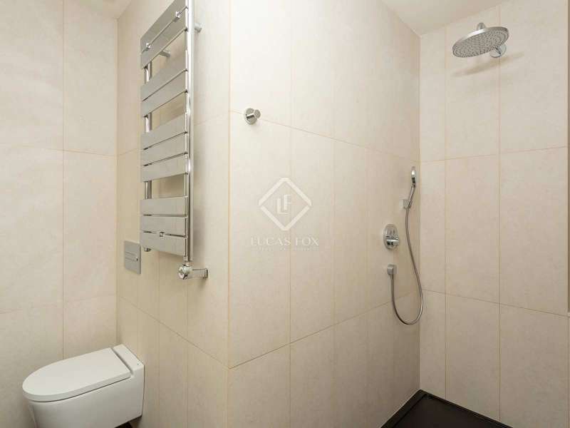 This impressive penthouse is part of a new build development in the centre of Barcelona. This development is located in a protected building with period features and facades, so it is a historic building in Barcelona, but with all kinds of modern comforts. It is located in a central but quiet environment, with views of Pau Claris Street and the tree-lined pedestrian promenade of the Méndez Vigo passage. Without a doubt, it is a truly privileged neighbourhood , with the exclusive Paseo de Gracia just a block away. This penthouse is distributed over two floors. On the ground floor , we find the beautiful open-plan kitchen diner and living room that opens to a terrace. A bedroom with its private bathroom, as well as a guest toilet complete this floor. On the upper floor , the fantastic main bedroom is offered with its private bathroom and a living room area. The highlight is the fantastic terrace with solarium on the roof, from where you can enjoy stunning views of the city. The finishes and materials are of the highest level, including the Bulthaup and Neff brand kitchens, the Roca, Duravit and Hansgrohe bathrooms. The property is prepared to have an internet connection and has state-of-the-art security features for complete peace of mind. The building itself is worth admiring: the grand lobby features tiled floors and modernist frescoes, and the lift leads directly to each floor. Contact us for more information about this property.