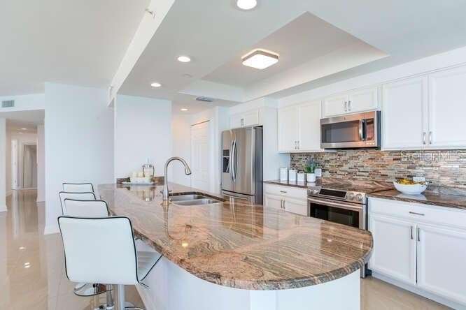 WELCOME HOME TO YOUR BEAUTIFULLY UPDATED, DIRECT BEACH-FRONT OASIS WITH AMAZING PANORAMIC VIEWS OF THE GULF OF MEXICO. IT HAS EVERYTHING YOU NEED, EVEN A PRIVATE GARAGE! WOW is the best way to describe this tastefully updated condominium with the Gulf of Mexico as your picturesque backdrop. THIS RARE AND HIGHLY SOUGHT-AFTER EXCEPTIONAL CONDO IS UNIQUELY POSITIONED ON THE NORTHWEST CORNER, OFFERING NOT ONLY UNOBSTRUCTED WEST VIEW BUT ALSO OPEN NORTHER VIEWS OF THE BEACH DUE TO THE NEIGHBORING COMMUNITY’S SETBACK, SHOWCASING SWEEPING VISTAS FROM THE GULF OF MEXICO TO CLEARWATER HARBOR. Upon entering this 3-bedroom, 2.5-bathroom spacious 1,942-sq-ft residence with open floorplan, you are greeted with an abundance of natural light and floor-to-ceiling glass, offering breathtaking panoramic water views from every room. Create lasting memories and enjoy watching sunsets from one of two balconies with incredible views. The west wrap-around balcony offers magnificent Gulf vistas, and the north balcony offers beautiful views of beach and bay! The kitchens feature contemporary cabinetry with gorgeous granite countertops, breakfast bar, and stainless-steel appliances. Adjacent to the kitchen is the dining area with magnificent open-water views. The Owner’s Suite features floor-to-ceiling sliding glass door and opens to a balcony where you can watch seasonal sunrise and feel cool gulf breezes with your morning coffee. The Ultimar on Sand Key is a desirable beachfront resort-style, gated community that offers a friendly, casual, yet luxurious lifestyle! Amenities include a clubroom with a full kitchen, TV/media center, billiard room and fitness room with steam/sauna. Outdoor amenities include three heated pools including a lap pool, three tennis courts, putting green, croquet lawn, basketball court, lush landscaping, on-site management and 24/7 guard-gate access. This condo comes with a private garage (#19) close to the semi-private lobby with coded elevator to your own floor for those looking for added privacy, security and accessibility. This property is convenient to shopping, restaurants, water activities, and to both Clearwater/St. Petersburg and Tampa International airports. Whether you’re seeking a dream vacation home or a luxurious year-round retreat, this rare direct Gulf-front gem offers a lifestyle without compromise. Schedule your private showing today!