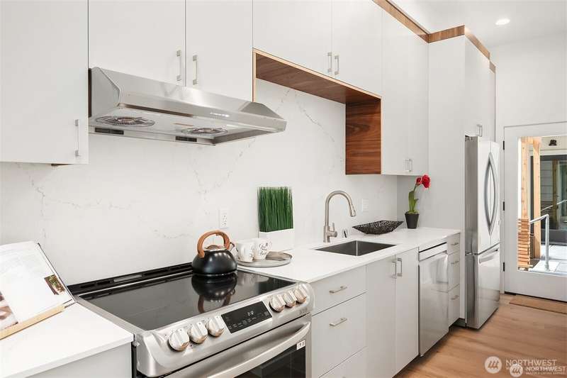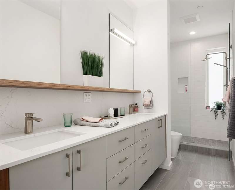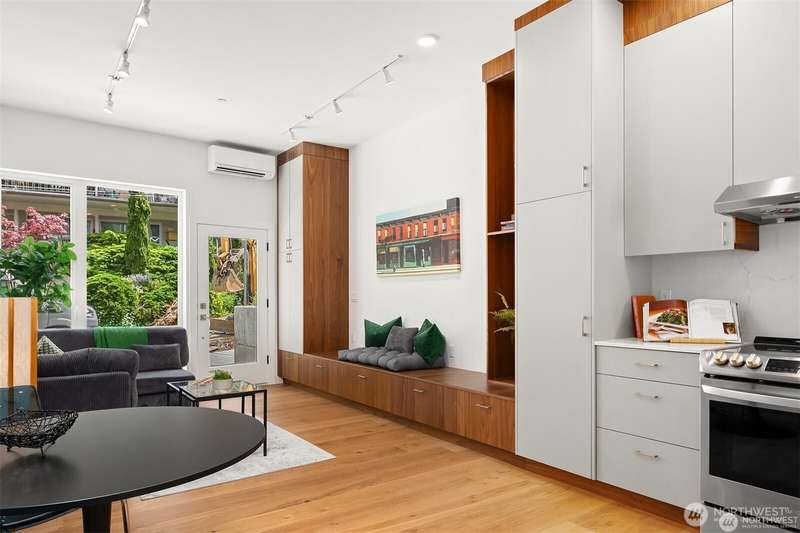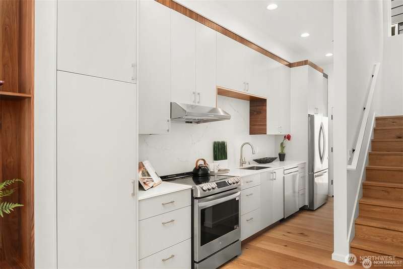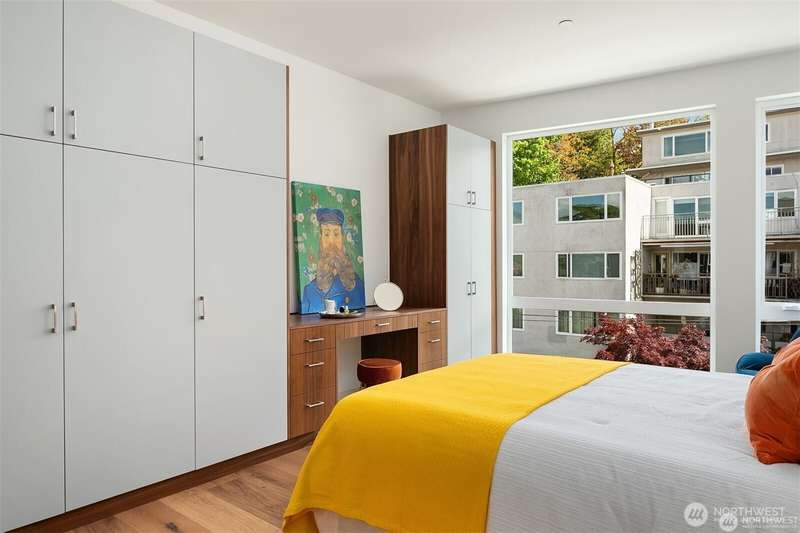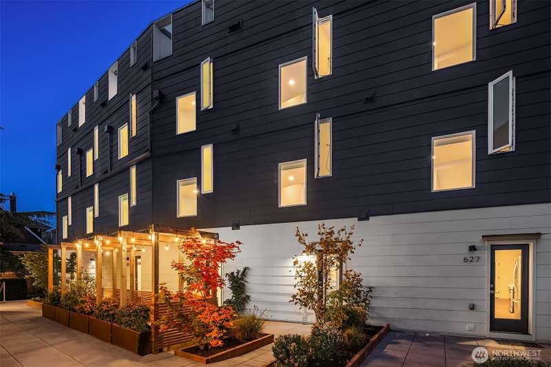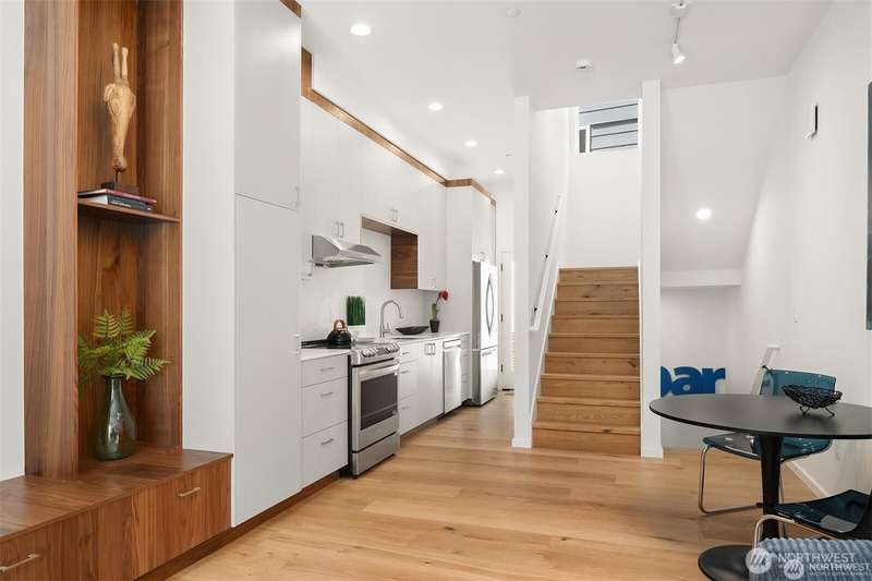 Welcome to 13th & Roy by GProjects, an AIA award-winning builder. Just steps from Volunteer Park, this collection of homes showcases custom cabinetry, Caesarstone countertops, hardwood floors, and premium appliances. The main level features a vaulted living, dining, and kitchen area with a full wall of built-ins. Upstairs, the 2nd floor offers a spacious bedroom and full bath, while the 3rd floor serves as the primary suite—highlighted by floor-to-ceiling windows. Enjoy a rooftop deck with stunning views, plus a lower-level bonus room ideal for a media room/gym/storage. Underground and city-permit parking options are available. Walk score of 80 and sweeping views of the Space Needle & city skyline. No HOA & 1 Parking space left!