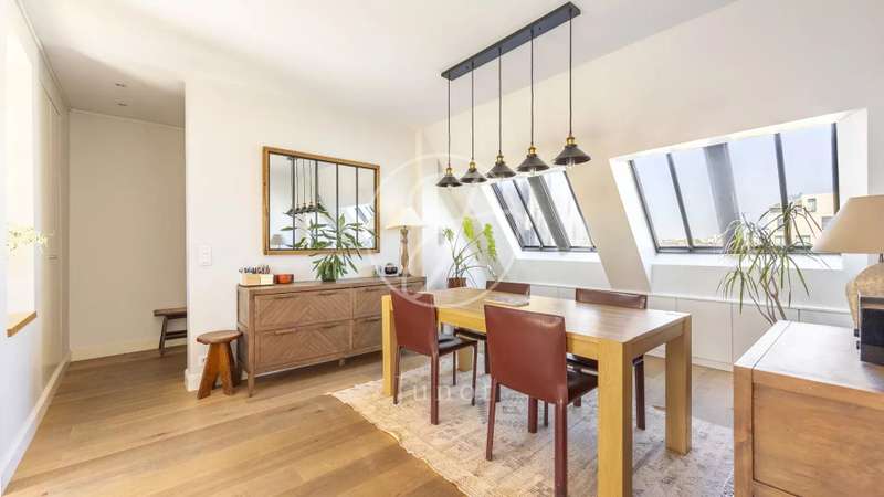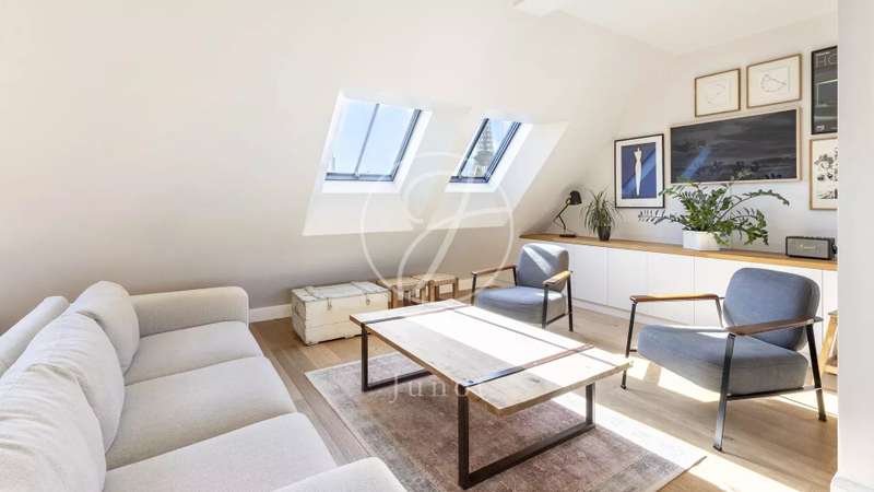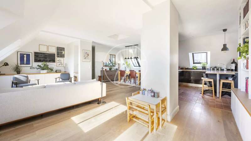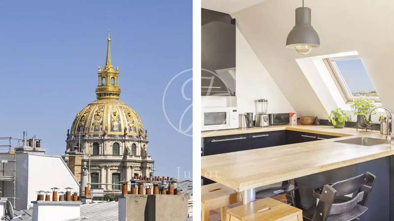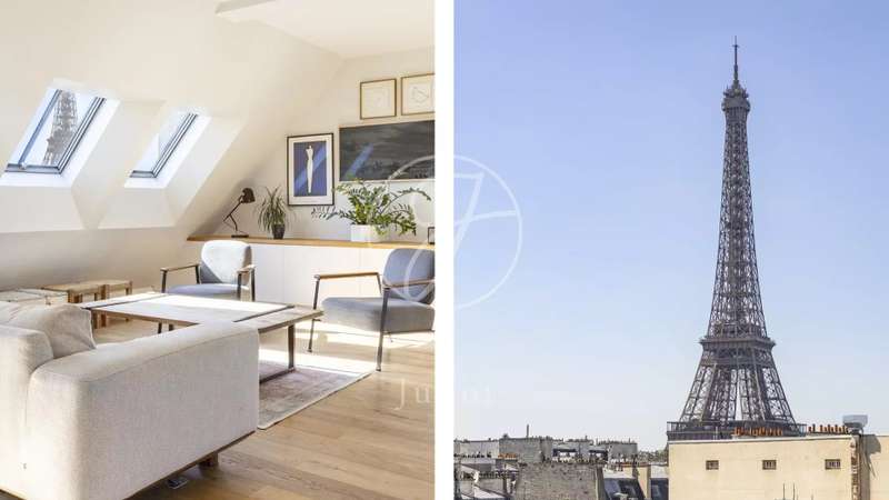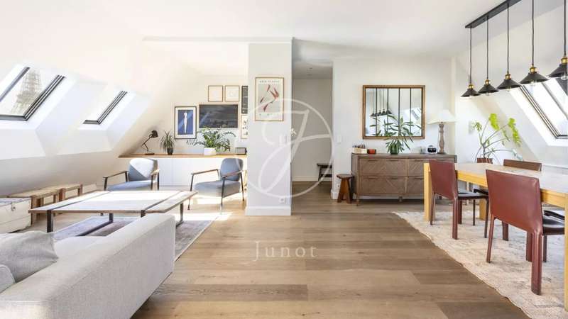 Ideally located in the heart of the Gros Caillou district, within easy reach of shops on Rue Cler and Champ de Mars, schools and all amenities. Superb family apartment on the seventh and top floor, with elevator, of a handsome Haussmann-style building with janitors. The 91.08sqm² loi Carrez and 119.85sqm floor area offers splendid views of Paris's major monuments, plenty of natural light, pleasant sunshine thanks to its four exposures and meticulous renovation. Its space-saving layout features an entrance hall, a spacious double living room with views of the Eiffel Tower, the Military Academy and Les Invalides, an open-plan fitted and equipped kitchen adjoining the living room, a comfortable master bedroom with en suite bathroom and views of Montmartre and the Grand Palais, an additional bedroom with views of the Eiffel Tower, a shower room and separate toilet.