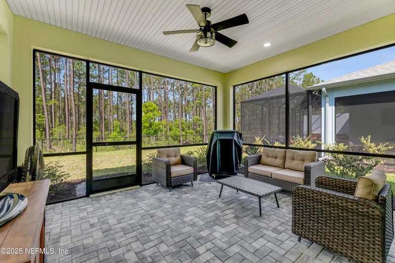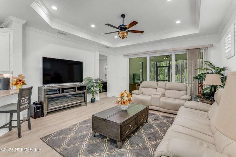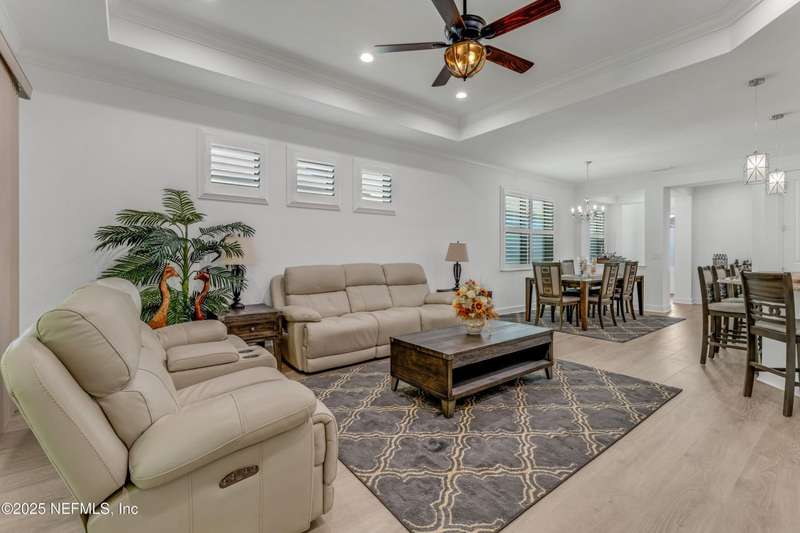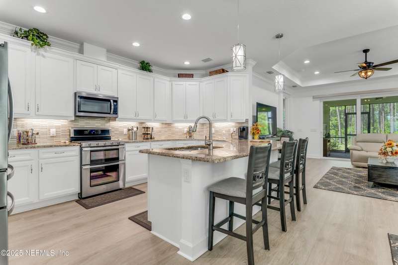 Time to grab your flip-flops and a margarita-paradise is calling! This gorgeous Barbuda Bay model in the heart of Latitude Margaritaville is your ticket to the ultimate 55+ resort lifestyle. Lightly lived in and loaded with upgrades, this home blends easy-going island vibes with high-end style. Built just over a year ago and in pristine condition, it's move-in ready and waiting for its next adventure-loving owner. As you enter, you'll be welcomed by an open-concept kitchen and living area designed for effortless entertaining and everyday comfort. Featuring two bedrooms, two full bathrooms, and a flexible den, this home offers plenty of room to unwind or host visitors with ease. High-end finishes include 8-foot interior doors, crown molding, plantation shutters, upgraded fans and lighting, and luxury vinyl plank flooring throughout the main living spaces. The chef's kitchen is a showstopper with 42'' white cabinets, granite countertops, stylish backsplash, under-cabinet li and soft-close drawers. The extended screened lanai with double sliding glass doors, a gas stub, and peaceful preserve views is the perfect spot to sip your morning coffee or toast sunset cocktails. Latitude Margaritaville's unbeatable amenities include resort-style pools, pickleball and tennis courts, a fitness center, theater, live music events, bars, restaurants, and a vibrant social calendar. Plus, enjoy shuttle service to the private beach club in Ormond Beach! Just minutes from Tanger Outlets, Daytona International Speedway, and gorgeous beaches, this golf-cart-friendly community offers the laid-back Florida lifestyle you've been dreaming of. Your slice of paradise awaits! BONUS: The seller is offering the furniture for purchase making it easy to move right in and start living the dream! HOA- covers exterior painting, roof, pest control and lawncare.