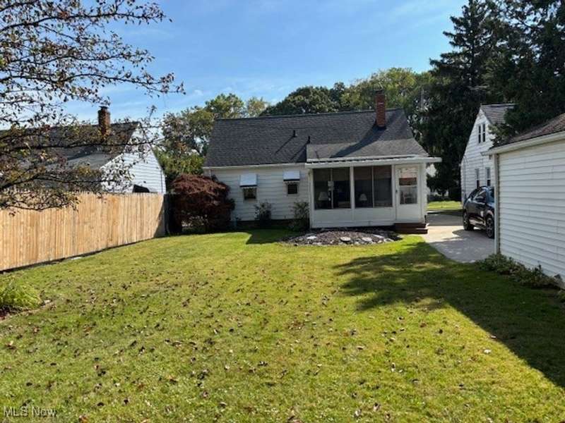 Well maintained bungalow with 3 bedrooms, 1 and 1/2 baths and large 3-season room overlooking a deep and private backyard. Large eat-in kitchen with extended island and appliances stay. 2 bedrooms on the first floor with walk-in closets and hardwood floors. Formal living room with hardwood floors under the carpeting and furniture can stay with the home. Upstairs bedroom with a half bath and lots of storage and closet space. All window treatments stay. Recreation room in one half of basement with paneling, linoleum floor and finished ceiling. Beautiful 3-season room with furniture adds a lot of extra space to enjoy most of the year. Detached one and a half car garage with new roof. All City of Maple Heights inspection will be completed by the Seller.