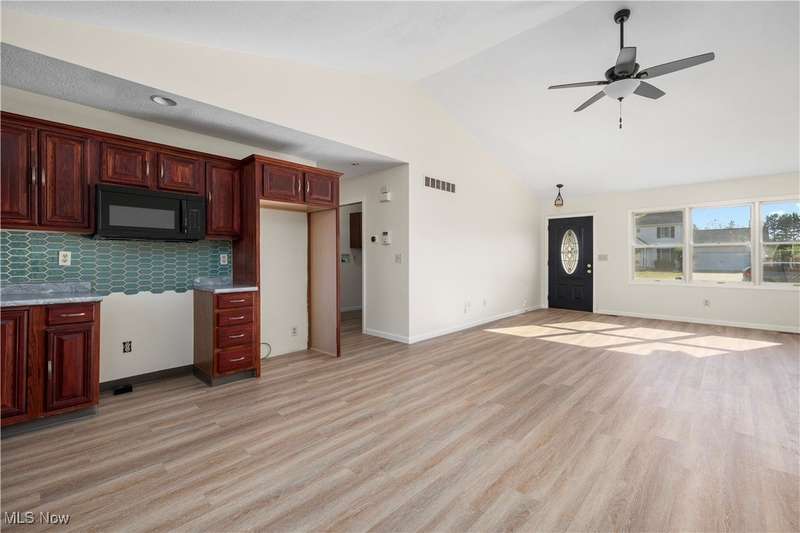 1996 built ranch home gives a modern layout and appeal! Recently refreshed with newer paint, flooring and lighting. EVERYTHING you need is on the main level including the laundry room and bedrooms/baths! There's also a full basement for storage! Enter a light and airy great room concept with vaulted ceilings and LVP wood look flooring! Spacious dining area! Kitchen has updated counters and backsplash. Desired split bedroom concept (where the owner's bedroom is located away from the other two bedrooms). Owner's bedroom offers dual closets and a full bathroom with updated light fixture and vanity! New furnace and water tank 2025! First floor laundry and attached 2 car garage.