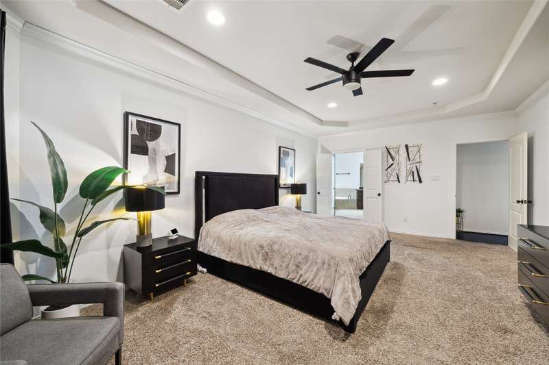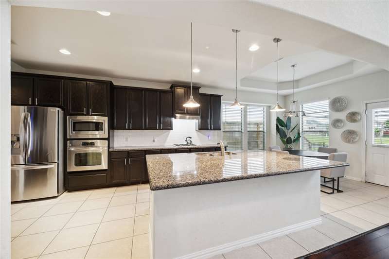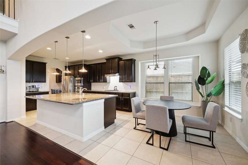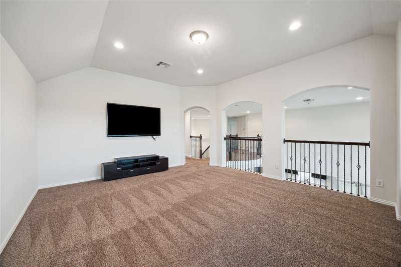 Welcome to 6419 St Placidia Drive, a spacious and well-appointed 5-bedroom, 3.5-bathroom home located in the desirable Chancel community in Spring, TX. Offering over 3,200 square feet of living space, this two-story residence features an open-concept layout with a large family room anchored by a gaslog fireplace, a granite island kitchen with a walk-in pantry, and a formal dining room for special gatherings. The primary suite is privately situated on the first floor and includes a sitting area, double sinks, a soaking tub, and a separate shower. Upstairs, you'll find four additional bedrooms, a generous game room, media room, and loft—ideal for both relaxing and entertaining. Additional highlights include vinyl plank and tile flooring, a sprinkler system, a fenced backyard, and a 2-car attached garage. Zoned to top-rated Klein ISD schools and offering a low 2.17% tax rate, this home combines comfort, convenience, and community charm in one exceptional package.