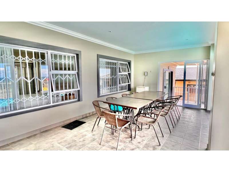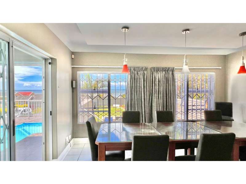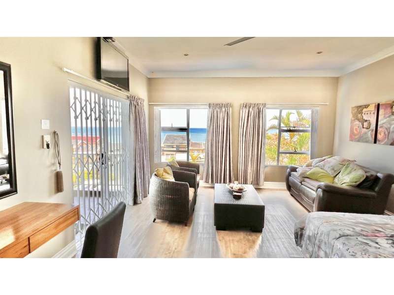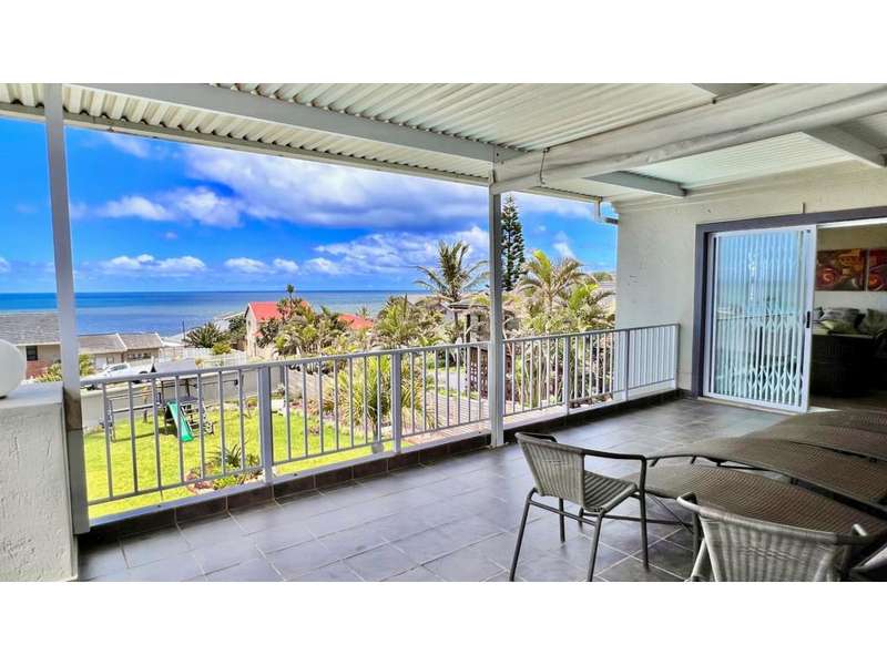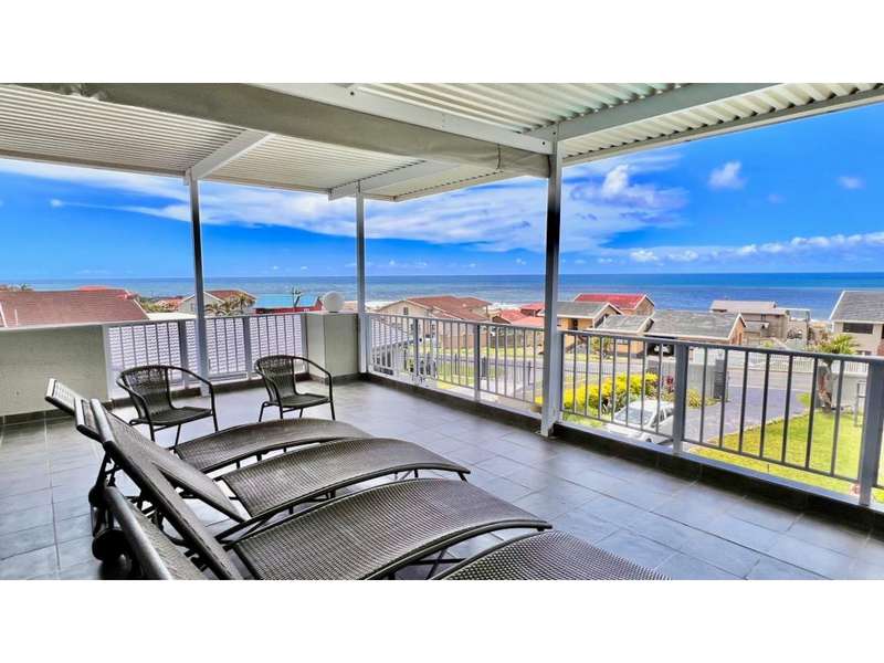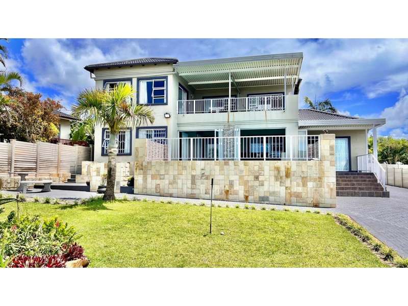 MODERN FAMILY HOME IN THE HEART OF ST MICHAELS ON SEA WITH PANORAMIC OCEAN VIEWS This is a 5-bedroom, 4-bathroom modern home with a sparkling swimming pool and ocean views. Downstairs is an open-plan kitchen with breakfast nook, scullery, laundry and pantry. The dining room opens out with stack doors to the pool and braai area. Two bedrooms, a bathroom with separate toilet, basin and shower. A sunken lounge with contemporary wall art. Upstairs there are 3 bedrooms, 2 opening out to the balcony. The main room is expansive, with a full bathroom and a double vanity, and flows out to the covered balcony, ideal for watching dolphins and whales. A bonus is a coffee bar. Paved driveway, double garage, double carport, manicured garden, backup water and staff quarters. View by appointment only. Call or WhatsApp Liz Foster at Chas Everitt