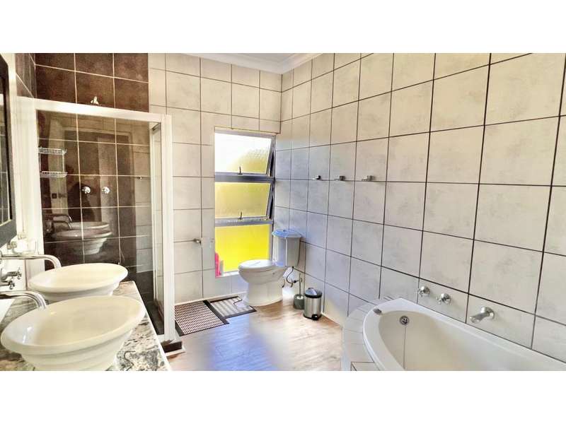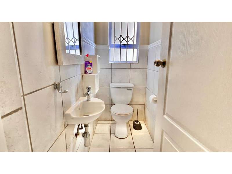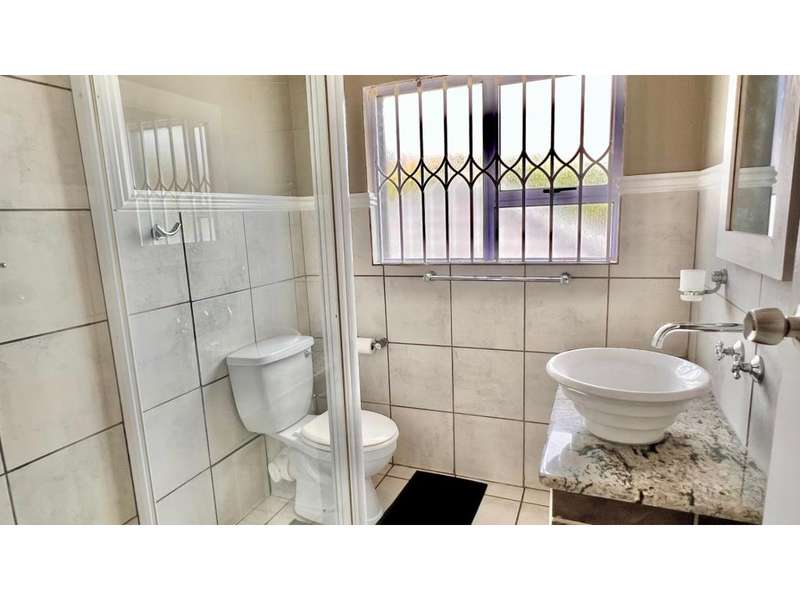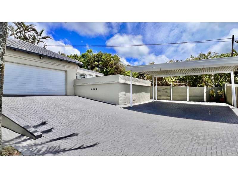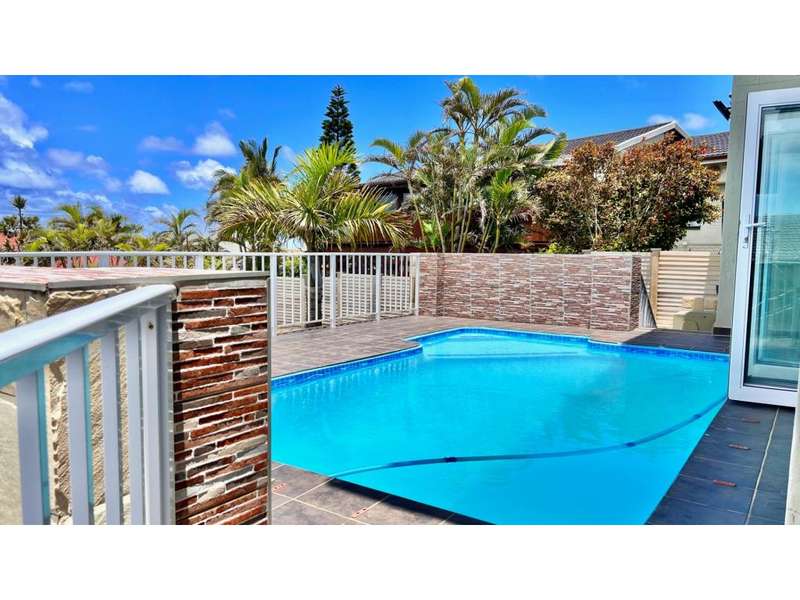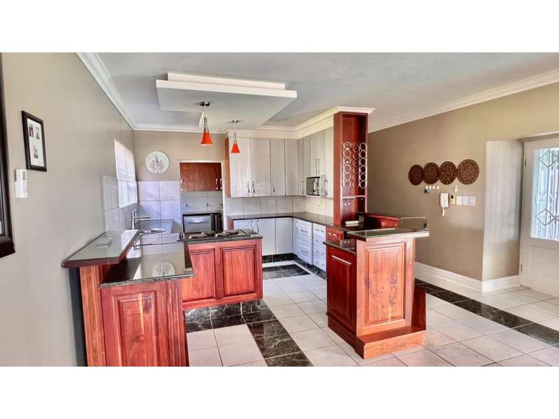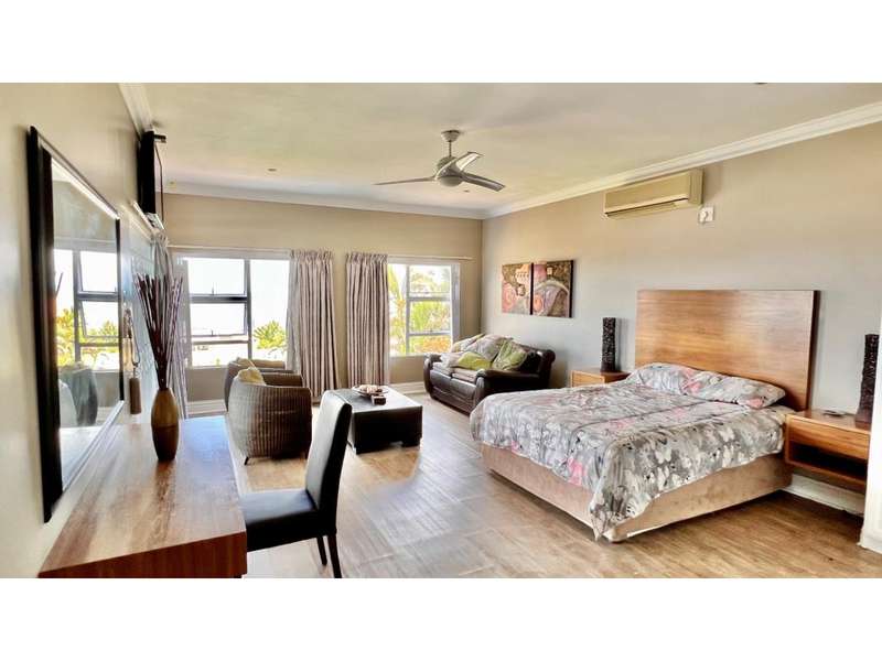 MODERN FAMILY HOME IN THE HEART OF ST MICHAELS ON SEA WITH PANORAMIC OCEAN VIEWS This is a 5-bedroom, 4-bathroom modern home with a sparkling swimming pool and ocean views. Downstairs is an open-plan kitchen with breakfast nook, scullery, laundry and pantry. The dining room opens out with stack doors to the pool and braai area. Two bedrooms, a bathroom with separate toilet, basin and shower. A sunken lounge with contemporary wall art. Upstairs there are 3 bedrooms, 2 opening out to the balcony. The main room is expansive, with a full bathroom and a double vanity, and flows out to the covered balcony, ideal for watching dolphins and whales. A bonus is a coffee bar. Paved driveway, double garage, double carport, manicured garden, backup water and staff quarters. View by appointment only. Call or WhatsApp Liz Foster at Chas Everitt