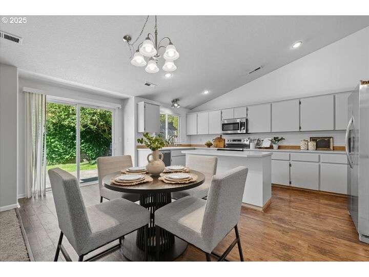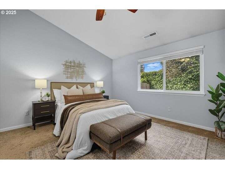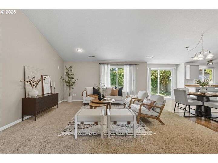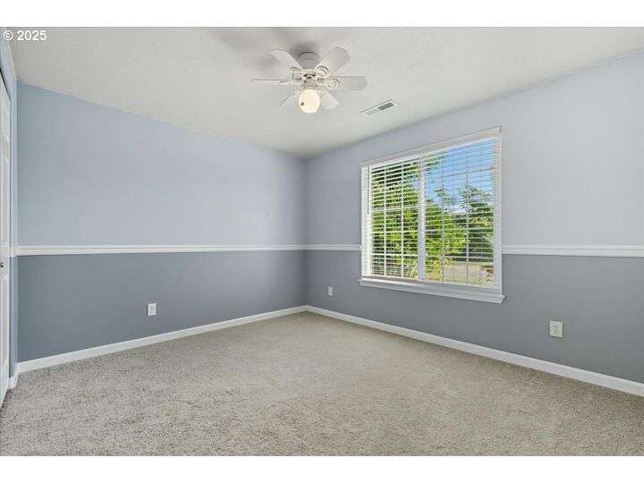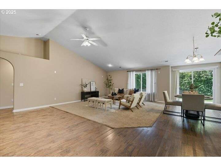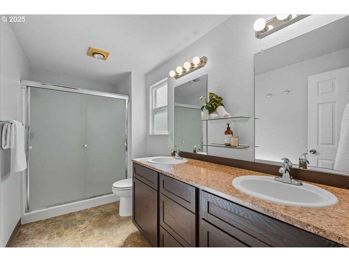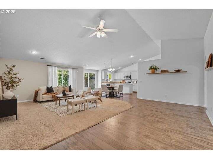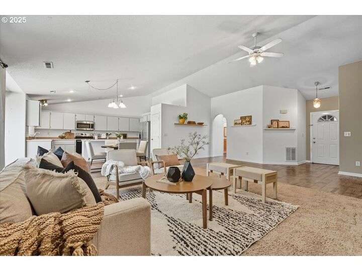 Experience comfort and convenience in this one-level, 4 bedroom, 2 bathroom home in the Shadow Ridge neighborhood within the sought after Hockinson School District. Designed with both function and style in mind, the spacious great room showcases vaulted ceilings and an open-concept layout ideal for everyday living and entertaining. The kitchen features a large island, stainless steel appliances and plenty of counter space. Unwind in the generous primary suite, complete with vaulted ceilings, a walk-in closet and an ensuite with double sinks. On the opposite side of the home you'll find three additional bedrooms, all offering ceiling fans and new carpeting, providing comfortable space for family, guests, or a home office. Additional features include gas forced air with central air conditioning, a dedicated laundry room, and a hobby/storage room in garage plumbed for a sink. Step outside to enjoy the charming front porch or relax in the private, fully fenced backyard, complete with a with a patio, fenced area for garden beds or dog run, and an automatic sprinkler system. Conveniently located just minutes from Padden Parkway, shopping, and restaurants, this home has it all.